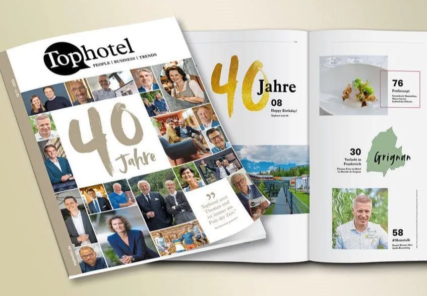 40 Jahre Tophotel – das sind 40 Redaktionsjahre am Puls der Branche: Ob steigende Energiekosten, Personalmangel oder technische Innovationen – die Themen von vor 40 Jahren sind dabei zum Teil auch heute wieder aktuell. Das zeigte sich, als wir zwecks Recherche durch die ersten Ausgaben von Tophotel geblättert haben. Überrascht hat uns zudem, dass zwei Serien die Zeiten überdauert haben – der „Auslandschef“ und der „Hoteltest“ gehören seit jeher zu den viel beachteten Formaten. Chapeau!