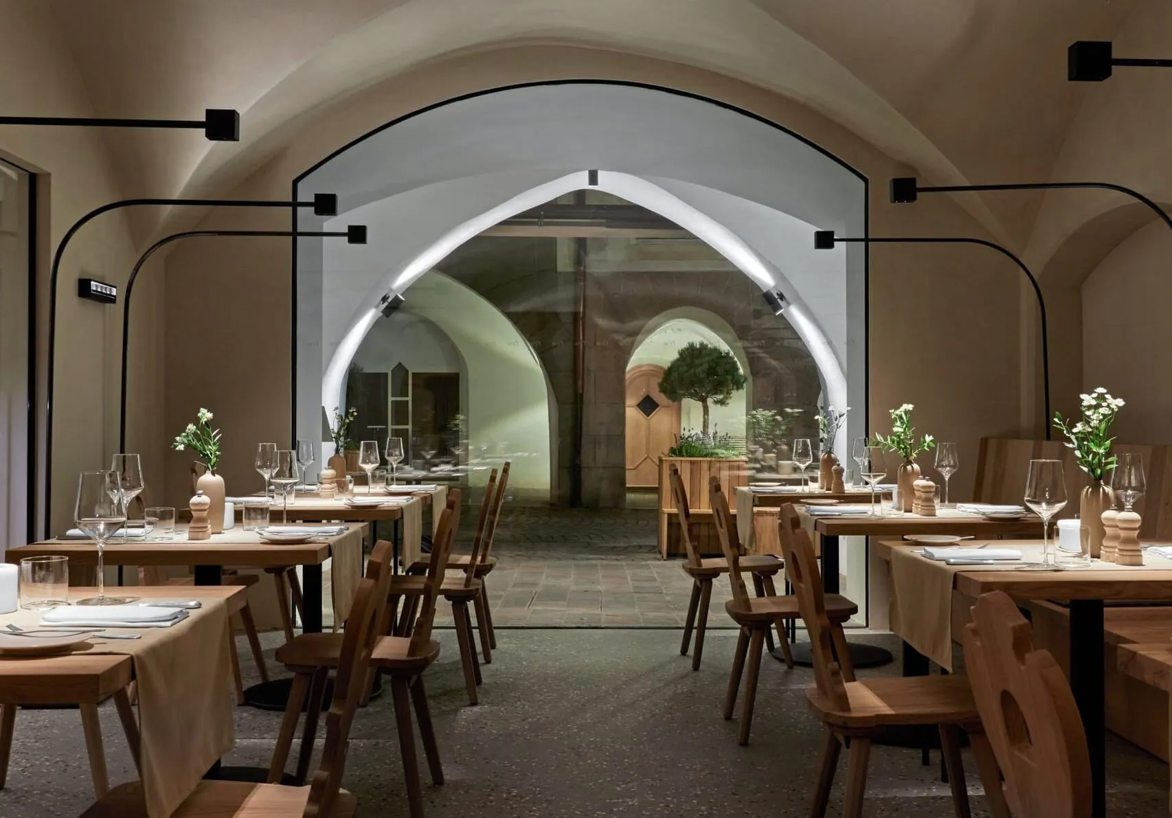 Das über 600 Jahre alte Laubenhaus in der ehemaligen Domstadt Brixen in Südtirol hat im August 2023 unter dem Namen fink als 9-Suiten-Hotel inklusive Laubenrestaurant mit sogenannter „Klosterküche“ und Thermae eröffnet. © Konstantin Volkmar/fink Restaurants&Suites