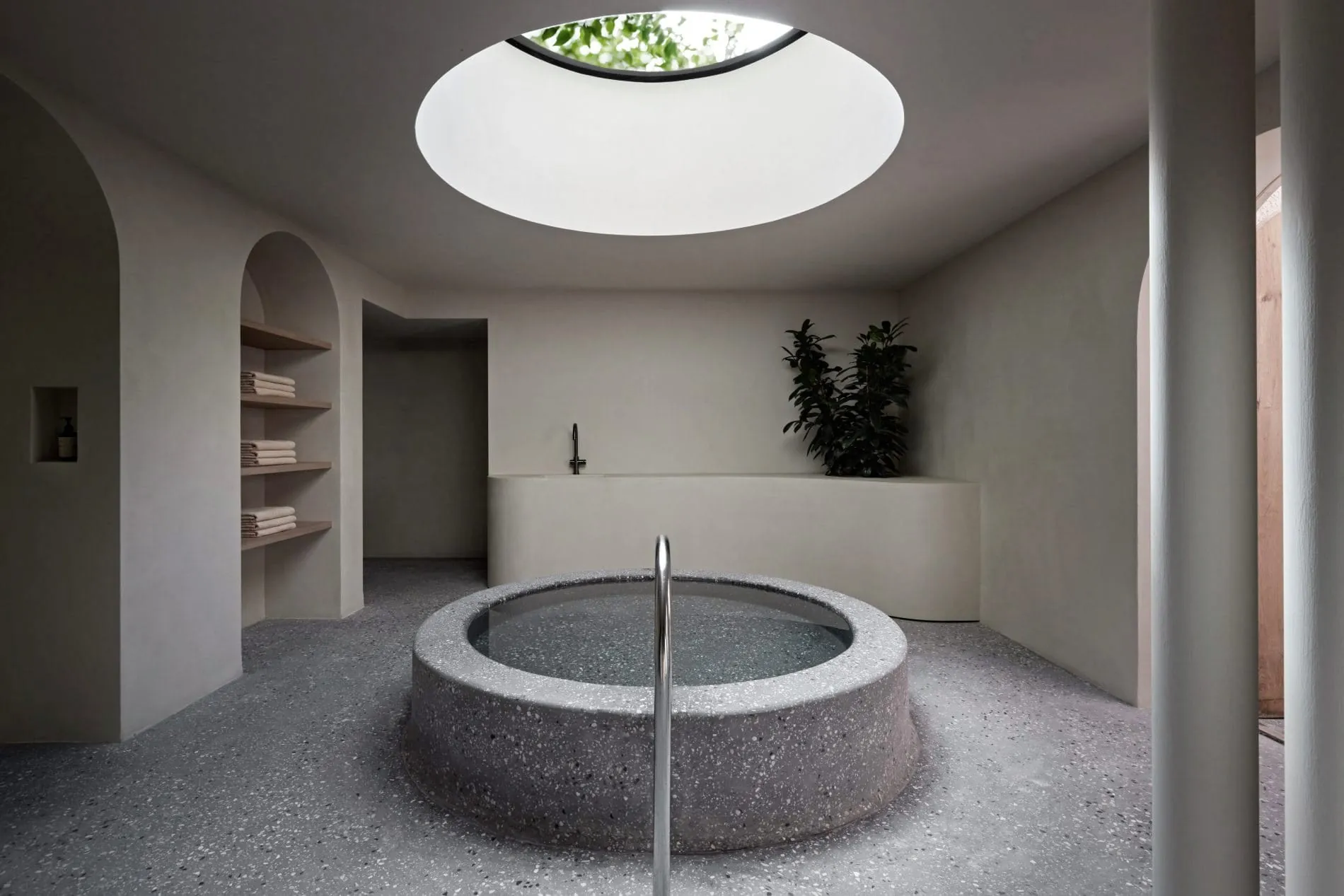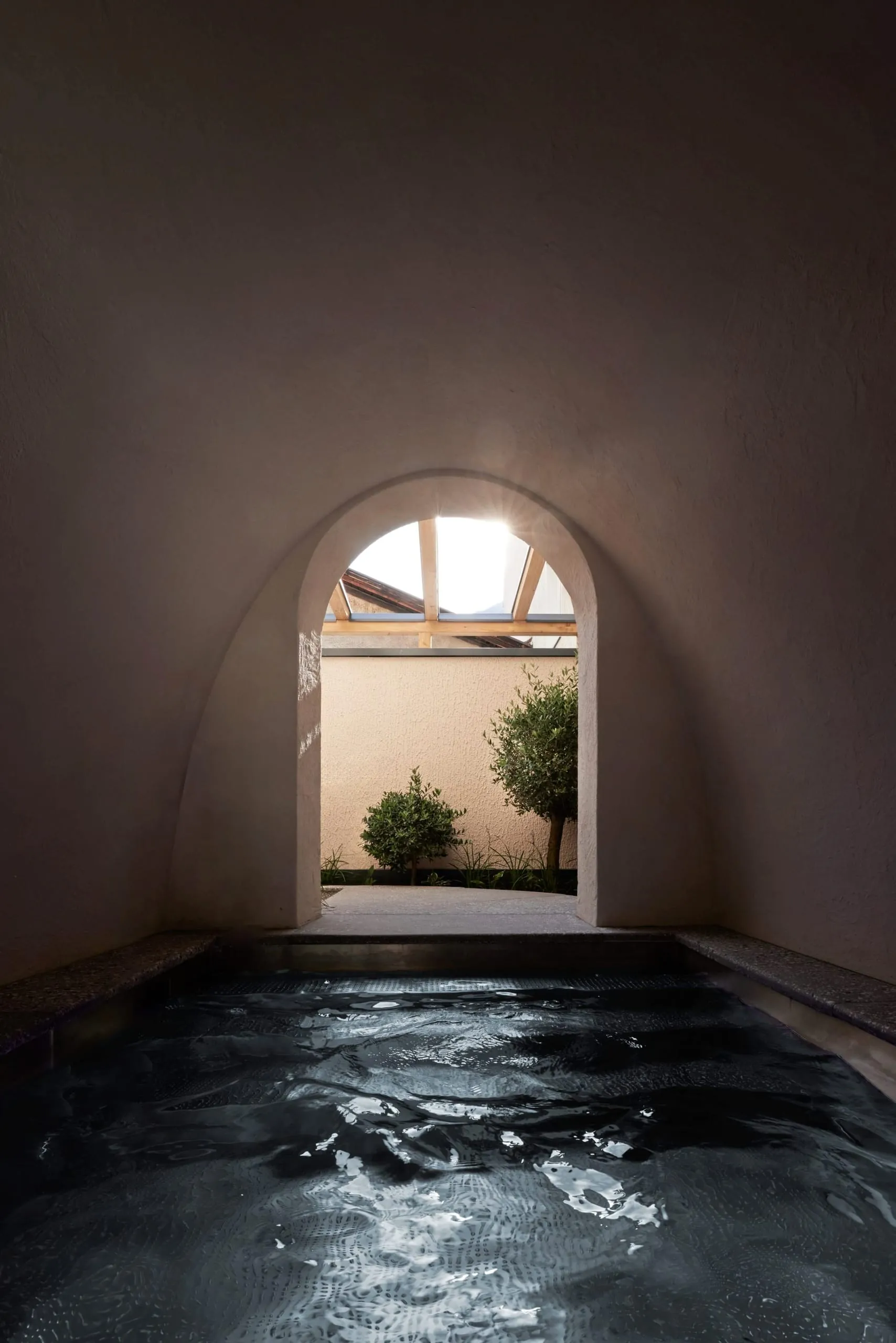 Es bietet ein Kalt- und Warmwasserbecken, einen gemütlichen Ruheraum und einen kleinen Außenbereich.