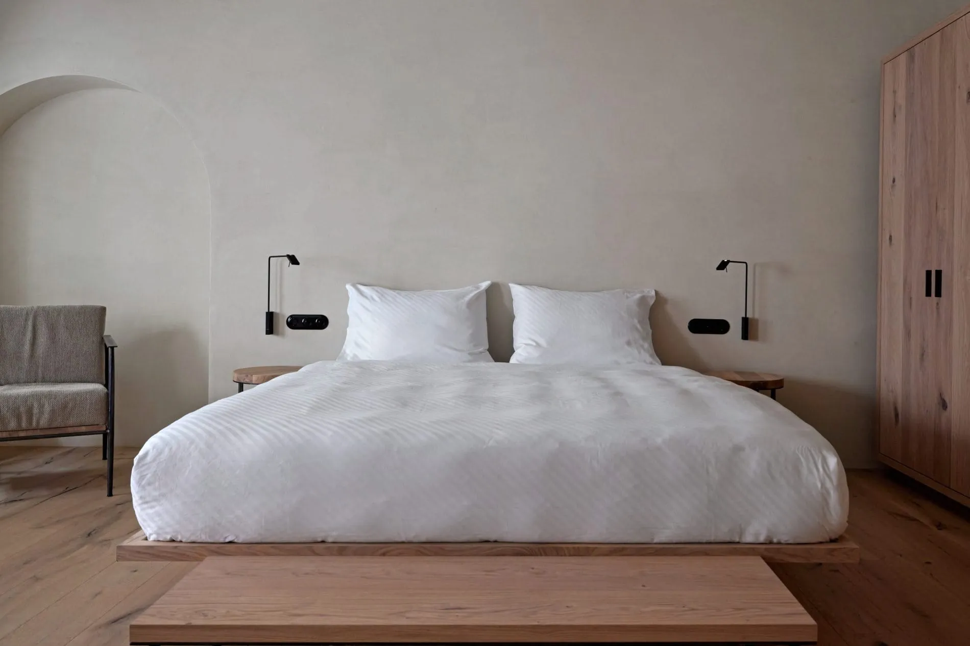 In den vergangenen Monaten unterzogen die Gastgeber Petra Hinteregger Fink und Florian Fink das seit über 125 Jahren inhabergeführte Gasthaus einer Neugestaltung unter der Regie der Asaggio Architekten aus Brixen. Eine klare und puristische Ausstattung der neun Suiten, des Restaurants und des Spas mit Pool und Ruheraum soll die klösterliche Atmosphäre unterstreichen. "Wir wollten den historischen Gemäuern neues Leben einhauchen, mit größtem Respekt vor dem Gebäude", beschreibt Petra Hinteregger Fink ihren Ansatz.