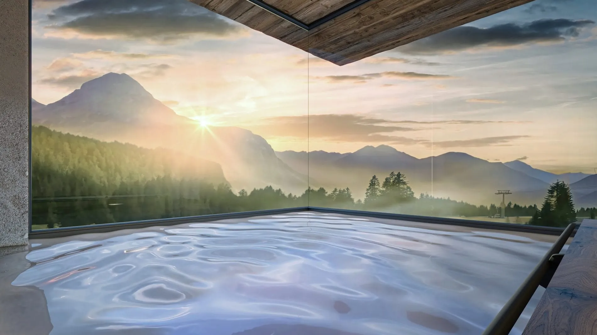 Auch im Spa wird die natürliche Umgebung integriert. So verlaufen die Böden uneben und erinnern mit kleinen runden Steinen an Wanderwege. Durch einen kühl-feuchten Eisnebel, der an eine Schluchtenpassage erinnert, gelangt man in die finnische Sauna. Heubetten und Schlaufenliegen erwarten die Gäste in einem Raum, der mit feinem Kräuterduft erfüllt ist. Massagen und Körperbehandlungen werden individuell abgestimmt. Statt eines festen Spa-Menüs gibt es ein persönliches Gespräch, um die Wünsche und Bedürfnisse der Gäste aufzunehmen. Die Therapeutin setzt gezielt die fünf Heilkräuter Arnika, Johanniskraut, Schafgarbe, Spitzwegerich und Brennnessel ein, um die natürliche Balance des Körpers wiederherzustellen. Abgerundet wird das Wellness-Angebot durch drei Quellbecken. red/sar