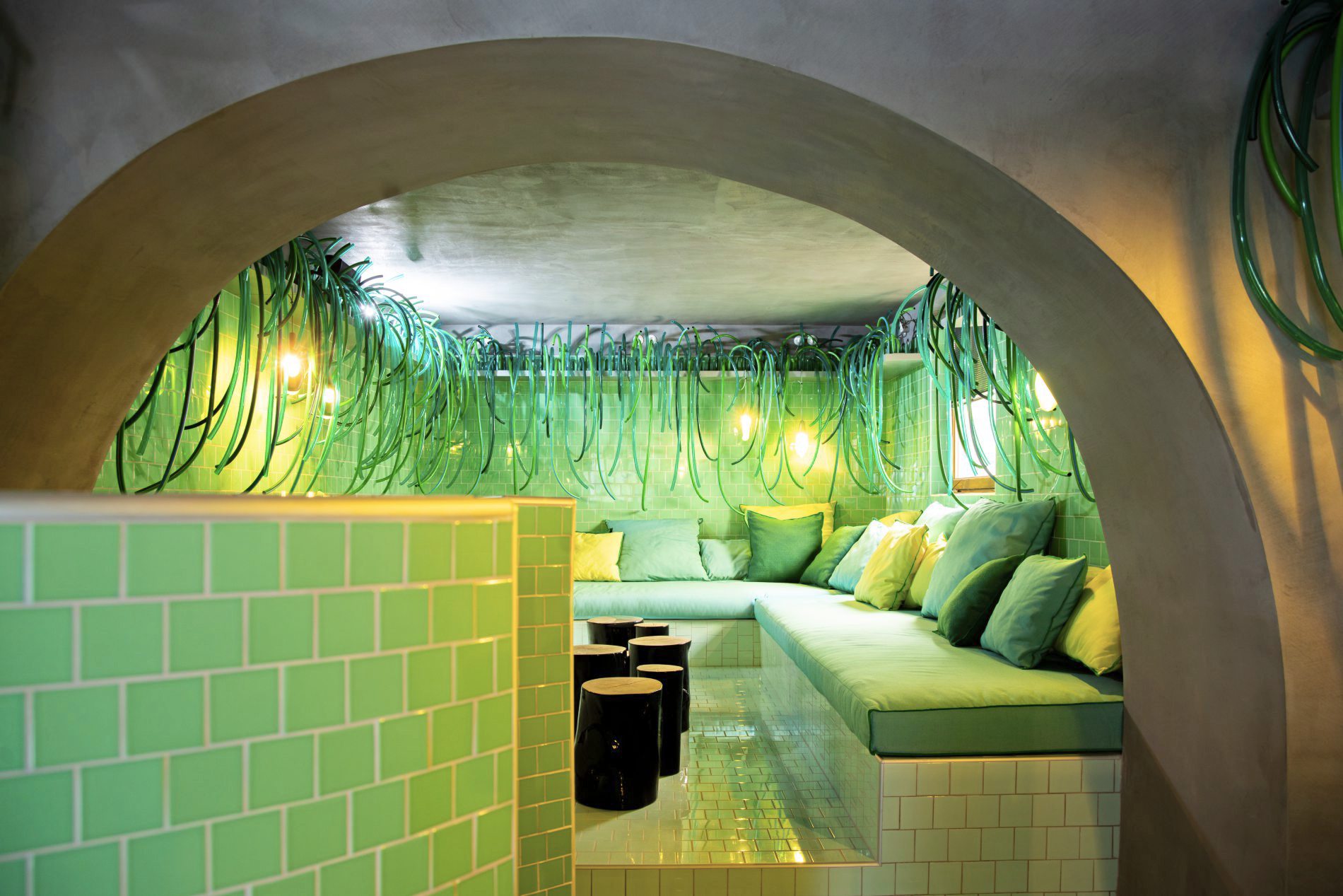 Der exzentrische Stil der Designerin und ihres Teams zieht sich durch alle Bereiche des Hauses. Die Gäste stoßen auf eine originelle Selektion an Vintage-Möbeln, die nach eigenen Angaben von Märkten und traditionellen Handwerksbetrieben aus der ganzen Welt stammen. Bei vielen Stücken handelt es sich um frühere Entwürfe des Designstudios. Einige Design-Elemente wie zum Beispiel das Geschirr des Restaurants San Paolino wurden speziell von Navone und ihrem Team für 25hours entworfen. Auffällig ist der vielfältige Materialmix; Marmor und Mosaik, Terrakotta und Metall, Spiegel und Holz oder Keramik und Glas wurden verwendet.