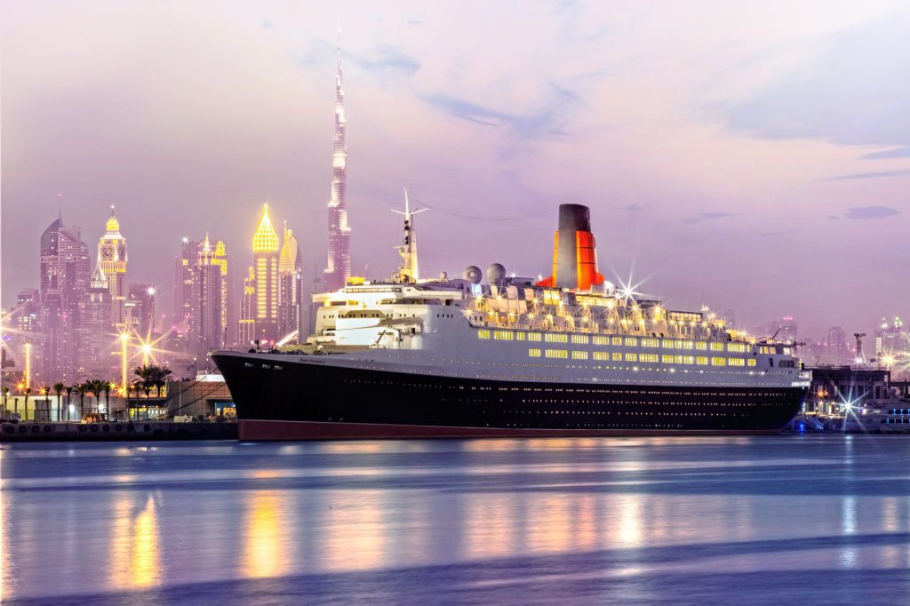 Die in Dubais Port Rashid gelegene Queen Elizabeth 2 (QE2) befindet sich in unmittelbarer Nähe der Sheikh Zayed Road mit einfacher Anbindung an alle wichtigen Attraktionen der Stadt. Der internationale Flughafen Dubai, die Dubai Mall, der Burj Khalifa und der La Mer Beach sind in weniger als 20 Minuten zu erreichen. Darüber hinaus sind die Palm Jumeirah und die Mall of the Emirates eine knappe halbe Stunde entfernt.