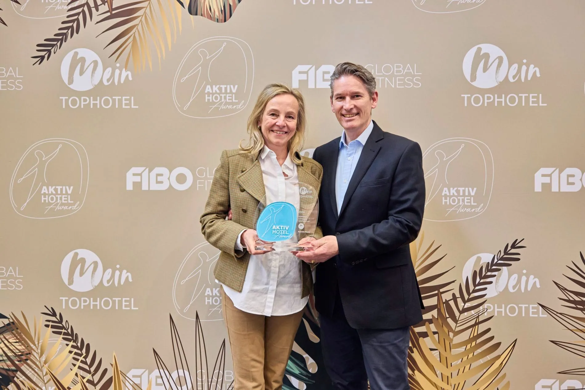 Inhaberehepaar Michaela und Josef Ritzinger aus dem Fünfsterne-Wellnesshotel Jagdhof in Röhrnbach freute sich über den Aktiv Hotel Award in der Kategorie "Fitness".