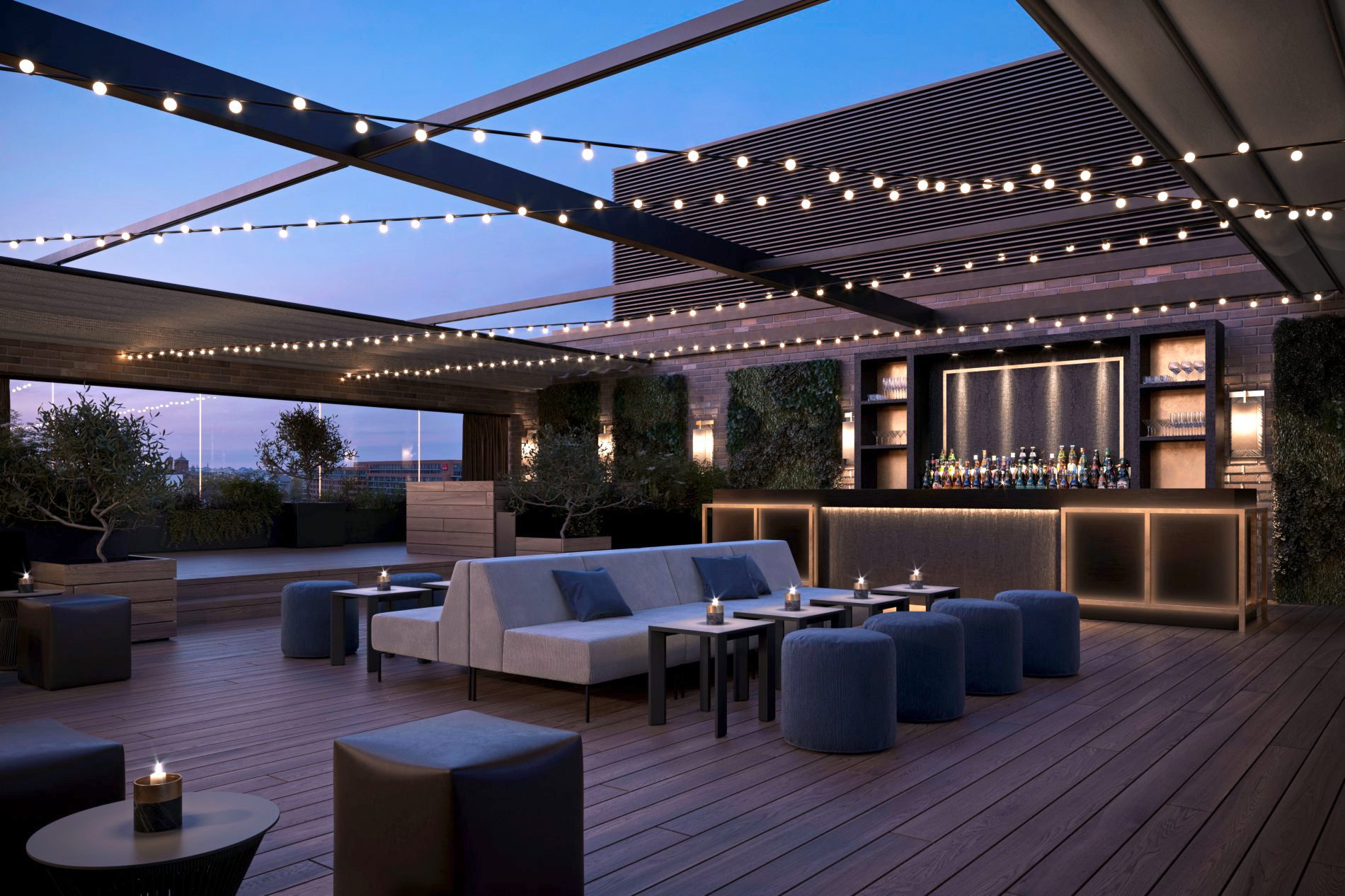 Die Dachterrasse der Hotels bietet einen Ausblick über Berlin, auf die Spree, den Fernsehturm und andere Wahrzeichen der Stadt. Für die dauerhafte Planung des Restaurants wartet die Amano Group die derzeitige Entwicklung für Gastronomien ab, ist jedoch zuversichtlich, auch hier bald ein neues spannendes Konzept vorstellen zu können. Für exklusive Events kann dieses bereits umfangreich genutzt werden.