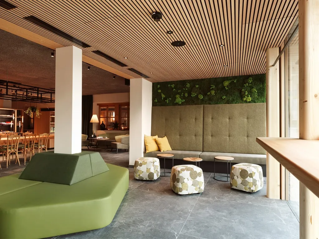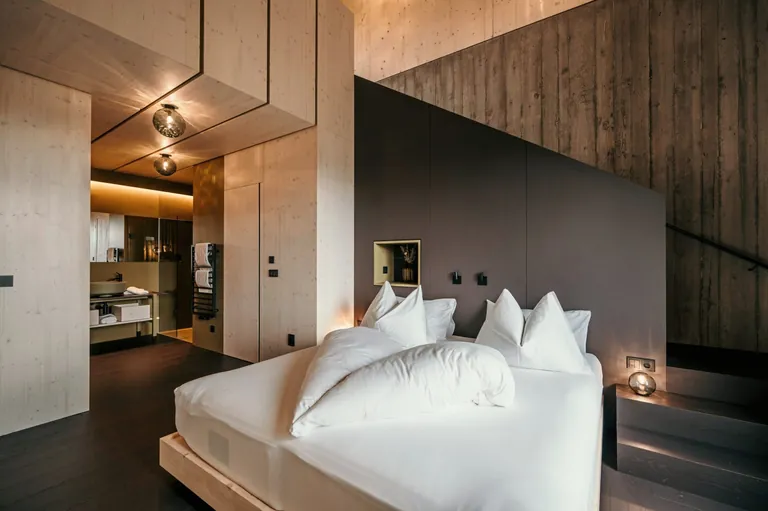 Maßnahmen: Ein neuer Naturteich mit Panorama-Biopool fügt sich in die Gartenlandschaft des Green Luxury Hotel Pfösl in Südtirol ein. Der Pool wird nur von der Sonne beheizt und durch Pflanzen gereinigt, ganz ohne Chemie. Drei neue „Eco Lofts“ (siehe Bild) mit ökologischen Materialien erweitern das Angebot. Jedes hat eine Terrasse mit finnischer Sauna sowie eine eigene Liegewiese. Auch das Haupthaus wurde modernisiert, Zimmer vergrößert und umgestaltet. Neu entstanden sind acht Suiten „Alpina Zirbe Aria“, zwei Suiten „Arve“ und zwei Natur-Doppelzimmer „Pinus“. Alle mit heimischer Zirbe, Naturmaterialien und freiem Blick auf die Dolomiten. Gebaut wurde mit regionalen Partnern.