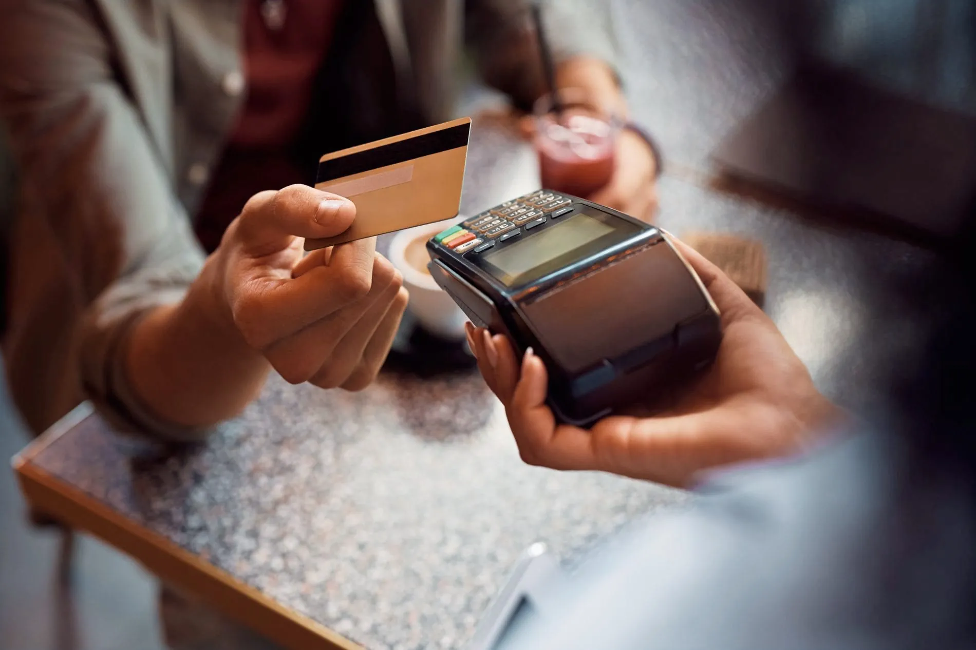 Person bezahlt im Restaurant per Karte