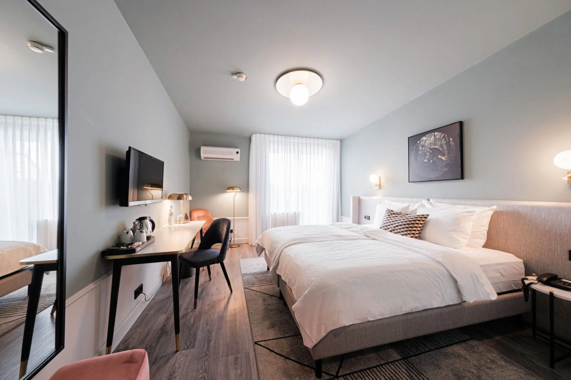 Seit 2021 ist das Art-Boutiquehotel Muze Düsseldorf im Stadtteil Pempelfort, unweit der Flaniermeile zwischen Kö und Rhein, das Mock-Up Hotel der Marke. "Das Hotel ist unser kreatives Aushängeschild und damit auch Namensgeber der neuen Marke", so Zizovy. Der Stilmix aus Elementen der 50er und zeitgenössischer Kunst, die Nespresso-Ausstattung im ganzen Haus sowie die XL-Sky Zimmer mit Blick über den Hofgarten sind einige der Highlights im Hotel.