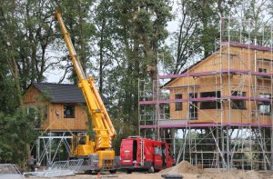 Das ortsansässige Unternehmen Witte Stahl- und Betonbau wird die Stahlstelzen dann zunächst, wie auch bei den fertiggestellten fünf Baumhäusern, in seinem Betrieb vorbereiten, Holzbau Simon aus Bülkau – ebenfalls ein bewusst regional ausgewählter Partner – wird die Häuser so weit wie möglich in seiner Halle vorproduzieren. Die Anlieferung soll per Autokran über die Feuerwehrzufahrt erfolgen, ohne den parkähnlich angelegten Garten in Mitleidenschaft zu ziehen. Die Häuser werden einfach eingeklinkt, „innerhalb von einem Tag ist auch das Dach geschlossen“, sagt Wolfgang Simon, Geschäftsführer von Holzbau Simon.