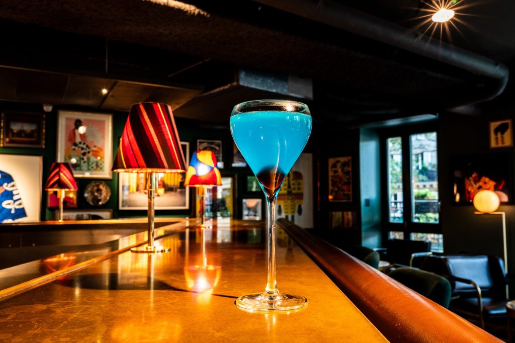 In der „Sape Bar“ des 25hours Hotel Terminus Nord in Paris setzt Barmanager Loïc Jouanin ebenfalls auf ungewöhnliche Farben wie Blau sowie unterschiedliche Schichten und Farbverläufe. Eine besondere Rolle spielen für den F&B-Profi die Gläser, da sie den ersten Eindruck prägen. Bei den 25hours Hotels sind diese teileweise mit individuellen Icons versehen. „Bei uns ist es ein kleiner Koffer, der die Verbindung zum nahen Bahnhof Gare du Nord schlagen soll“, so der Barmanager. Für ein erfolgreiches Posting ebenso wichtig: Das Interior sowie das Design der Barkarte, da diese gern mitfotografiert würden. Aktuell im Trend zudem: getrocknete Früchte wie hauchdünn aufgeschnittene Orangenscheiben und Kräuter. Ein klares No-Go für den F&B-Profi sind dagegen Plastikstrohhalme und Cocktailschirmchen.