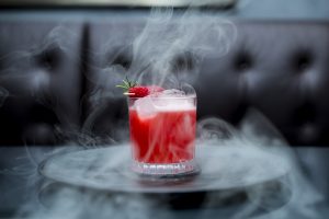 „Smoking Kitty“ etwa wird mit Hilfe einer Smoking Gun, eine Art Pistole, die mit Holzchips Rauch produziert, unter einer Glasglocke geräuchert und mit der Abdeckung an den Tisch gebracht. „Viele Gäste bestellen sich den Cocktail ein zweites Mal, um den Showeffekt des ‚Glockelüftens‘ auf ihrem Smartphone festzuhalten und auf Social Media zu teilen“, freut sich der Bar ­Supervisor. Auf die richtige Verlinkung weist das „Sophia’s“-Team im Profiltext der eigenen Instagram-Seite hin. Dort heißt es: „If you eat & drink with us, tag @SophiasMunich“.