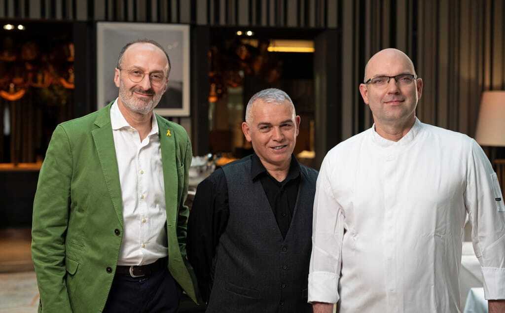 Die Gesichter hinter dem Konzept: (v.l.) Hoteldirektor Zeèv Rosenberg, Restaurantmanager Adnan Cetin und Küchenchef Andreas Schatzschneider. - © SO/ Berlin Das Stue