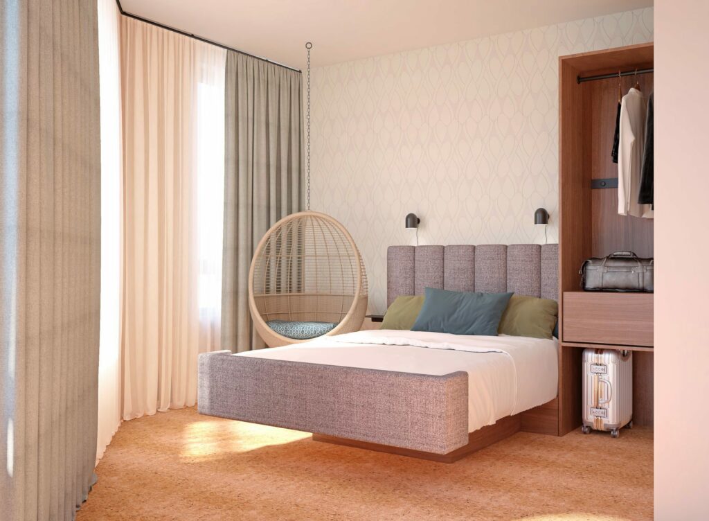 Cocoon Next steht für die neue Generation der Münchner Marke. Konzeptionell erfolgt nach Unternehmensangaben eine Rückbesinnung auf die Bedeutung des Begriffs "Cocoon" (Kokon). So hat jedes Haus der neuen Generation einen Schmetterling als Paten. Dieser nimmt Einfluss auf Materialität, Farbgebung und Story. Allen Häusern gemein ist dabei das Thema Metamorphose. "Von der geheimnisvollen Raupe über die Verpuppung im Ruhepol Zimmer bis hin zum kontaktfreudigen Schmetterling durchleben Reisende verschiedene Inspiration und Energie während ihres Aufenthalts", erklärt Lisa Burger, Development Managerin bei Cocoon. Während die gemütlichen Zimmer mit warmen Farben und natürlichen Materialen als Rückzugsort zum Entspannen einladen, soll die bunte und vielfältige Lobby nicht nur Hotelgäste, sondern auch Salzburger ansprechen.