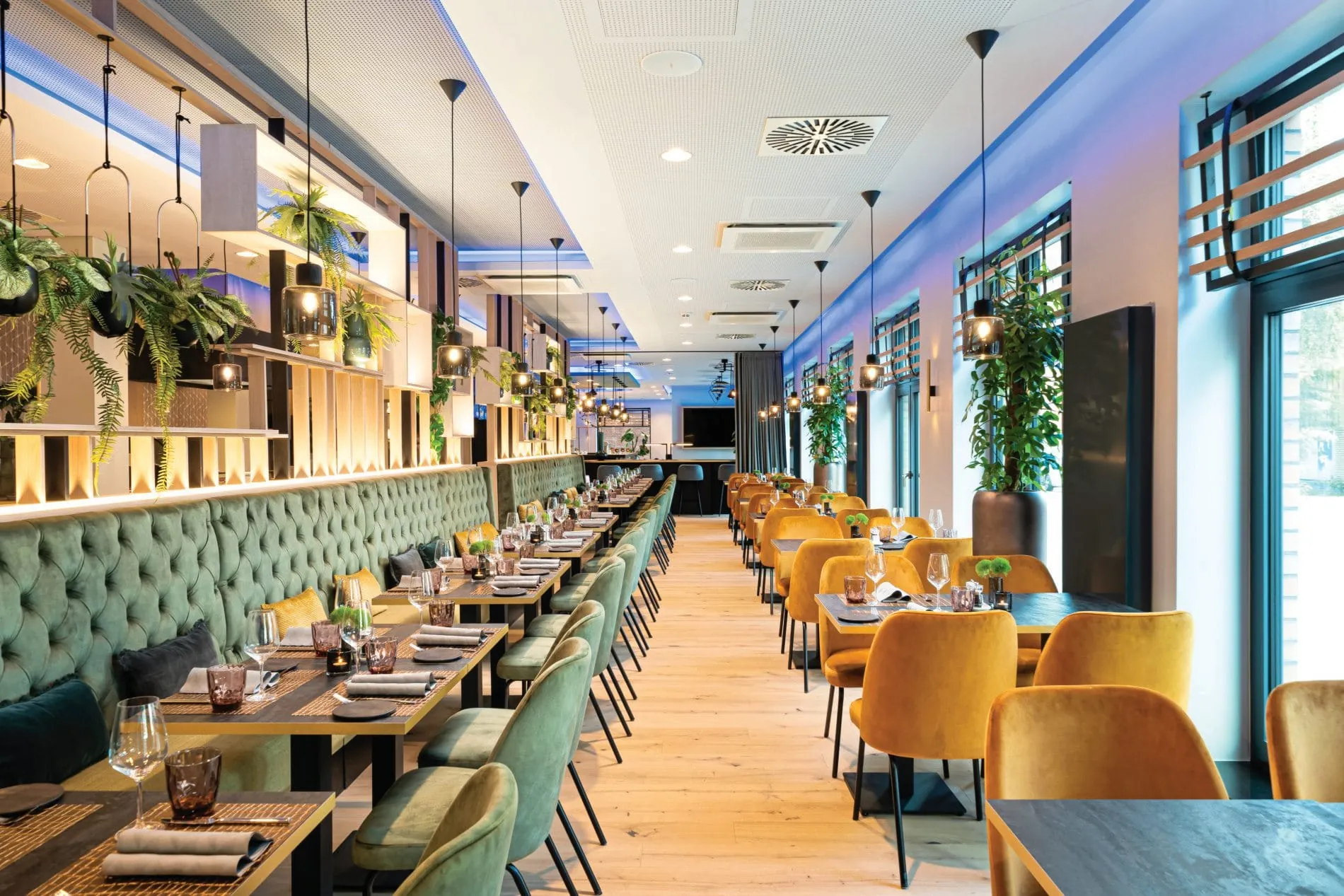 Urban: Das Restaurant im Leonardo Hotel Hamburg Altona. Das Hauptgebäude des Hotels wird 2024 mit Apartments erweitert. © Leonardo Hotels Central Europe