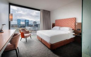 Das Hotel mit 146 Zimmern verfügt über bodentiefe Fenster, die es den Besuchern ermöglichen sollen, die Skyline der Stadt zu betrachten. Zusätzlich soll Gästen in den speziell für Hilton entworfenen Betten eine komfortable Schlafgelegenheit geboten werden. Die Zimmer verfügen über Co-Working-Zonen, Media-Hubs mit TV-Streaming-Optionen und kostenloses Wlan.
