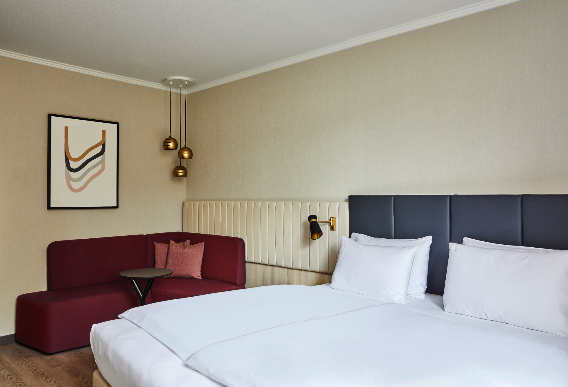 Neue Maßstäbe setzen auch die umgestalteten "WorkLife"-Gästezimmer mit Bereichen für Arbeit, Entspannung und Schlaf: Sie sollen den Gästen ein angenehmeres Raumgefühl vermitteln. Die Zimmer bieten zudem Steckdosen neben dem Bett, leistungsstarke Haartrockner, Sofas mit Hockern und einen kleinen Arbeitsbereich. Verkauft werden die Einheiten in Hamburg ab 110 Euro.