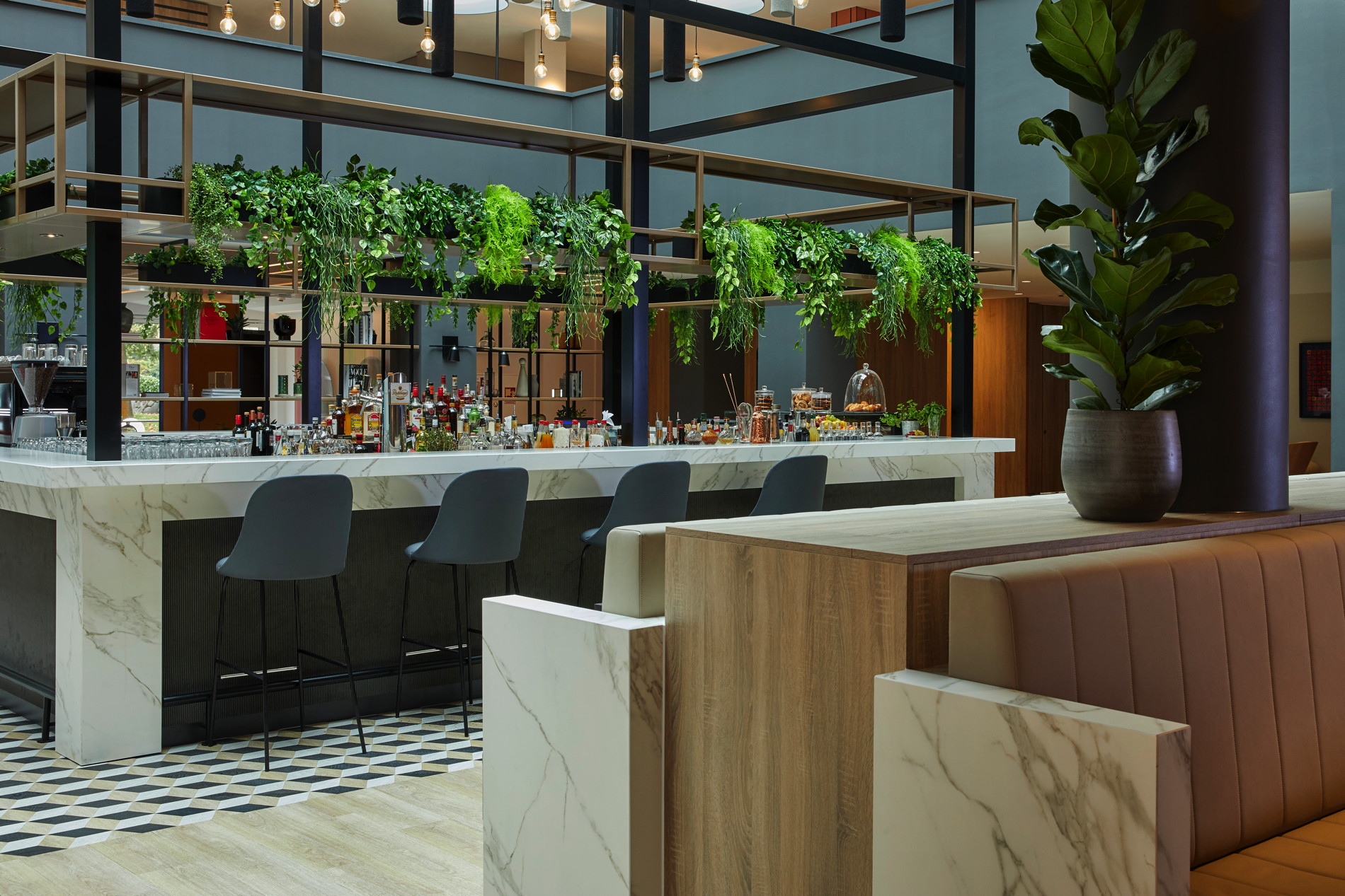 Der „Plaza Workspace“ interpretiert den traditionellen Lobbybereich des Hotels völlig neu und schafft einen offenen und einladenden Raum mit flexiblen Arbeitsbereichen und attraktivem Speisen- und Getränkeangebot. Hier finden Gäste und Einheimische eine inspirierende Umgebung zum Wohlfühlen. Praktisch: Überall im „Plaza Workspace“ gibt es Strom, in die Tische integrierte Ladestationen für Mobiltelefone und Zugang zu Highspeed-WLAN.