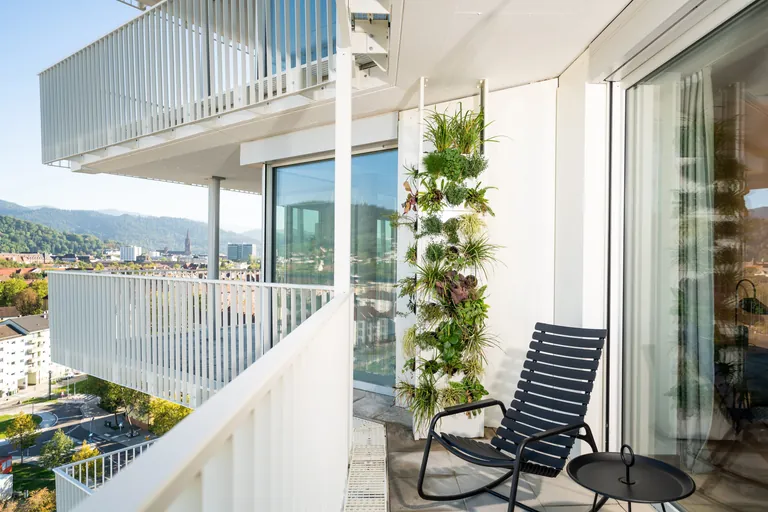 Ein schönes Beispiel für eine ästhetische Begrünung ist etwa der Black F Tower in Freiburg. Hier binden rund 50.000 immergrüne Pflanzen ganzjährig 35 bis 40 Tonnen CO2 und sorgen für ein angenehmes Mikroklima. Dafür wurden die Serviced Apartments nun vom German Design Award in der Kategorie „Excellent Architecture – Eco Design“ ausgezeichnet. Die internationale Fachjury lobte „Deutschlands größte begrünte Fassade" und deren positive Wirkung für das Klima.