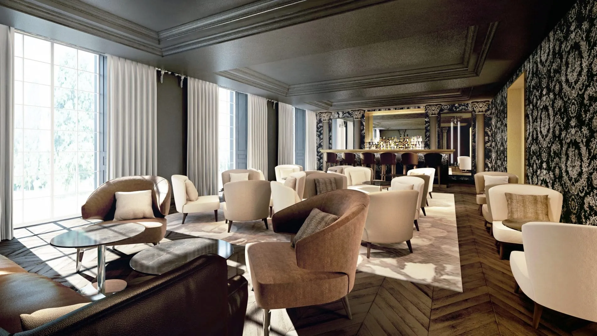 Das Luxushotel wird klassische französische Eleganz mit modernem Komfort vereinen. Bei der Gestaltung des Interieurs wurde besonders großes Augenmerk auf die Repräsentation der Familie Oberkamp-Mallet sowie der Stadt Jouy-en-Josas gelegt. So zeigt die Ausstattung der Gästezimmer etwa Motive des für seine floralen und figuralen Dessins bekannten Textildruckes „Toiles de Jouy“, der im 20. Jahrhundert von Christophe-Philippe Oberkampt in der Stadt Jouy-en-Josas entwickelt und hergestellt wurde.