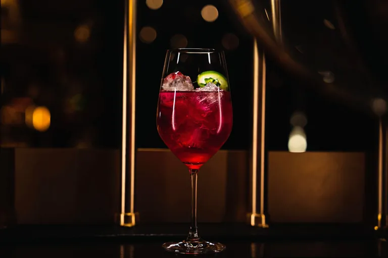 "Die Barkarte der Provocateur Bar ist eine Reise durch die zwölf Berliner Bezirke, jeder Drink ist einem Stadtteil gewidmet. Für Berlin-Mitte haben wir den Hipster-Drink kreiert. Er ist eine schöne Kreation auf Basis eines Gin Spritzes, der durch die Verwendung von Roter Bete und Quinoa mit dem Healthy-Lifestyle-Klischee dieses Stadtteils spielt."