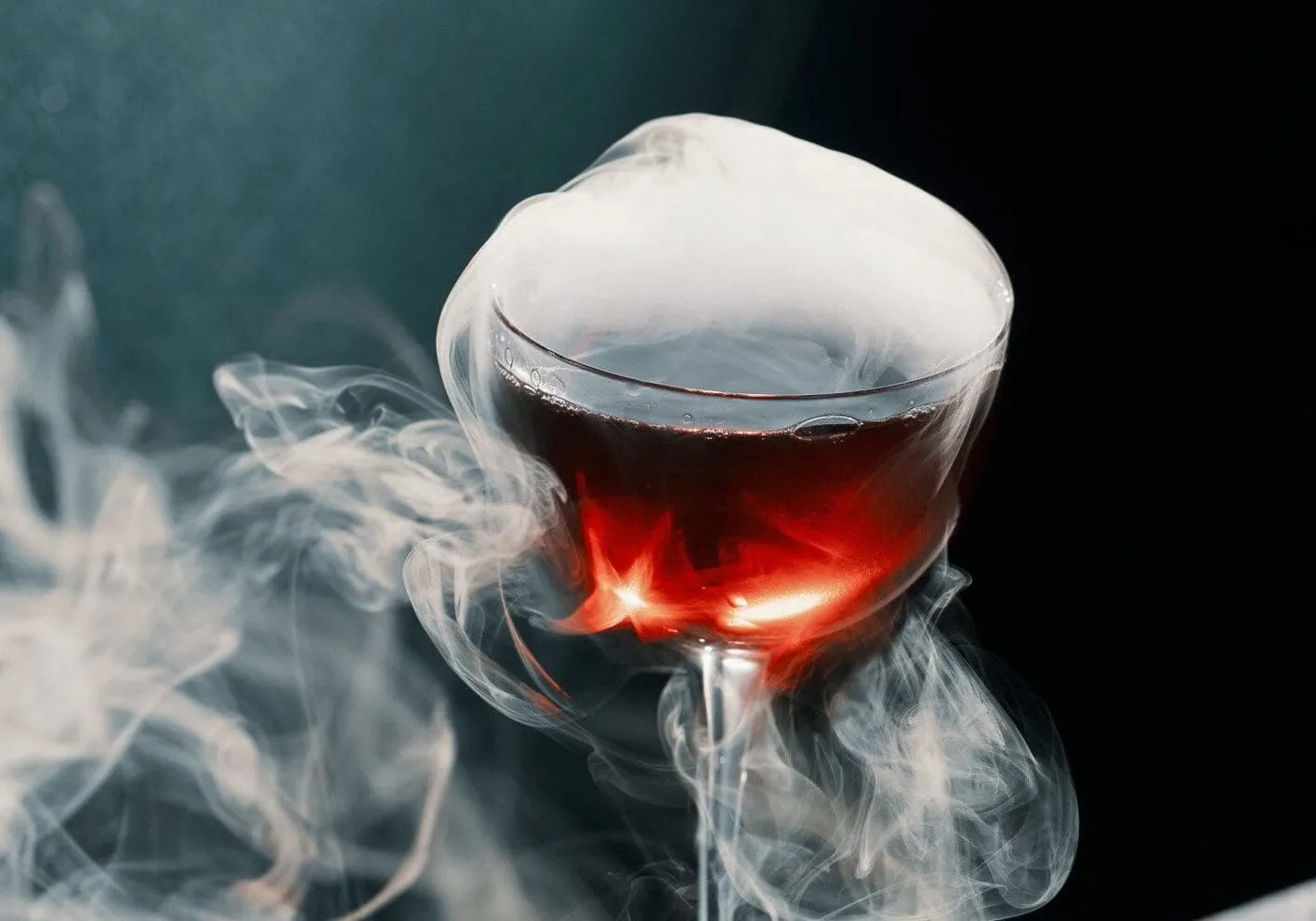 Alle Zutaten im Mixingglas schön kalt rühren und im Nick- & Nora-Glas servieren. Wer möchte, macht für die Show noch ein bisschen Rauch.
