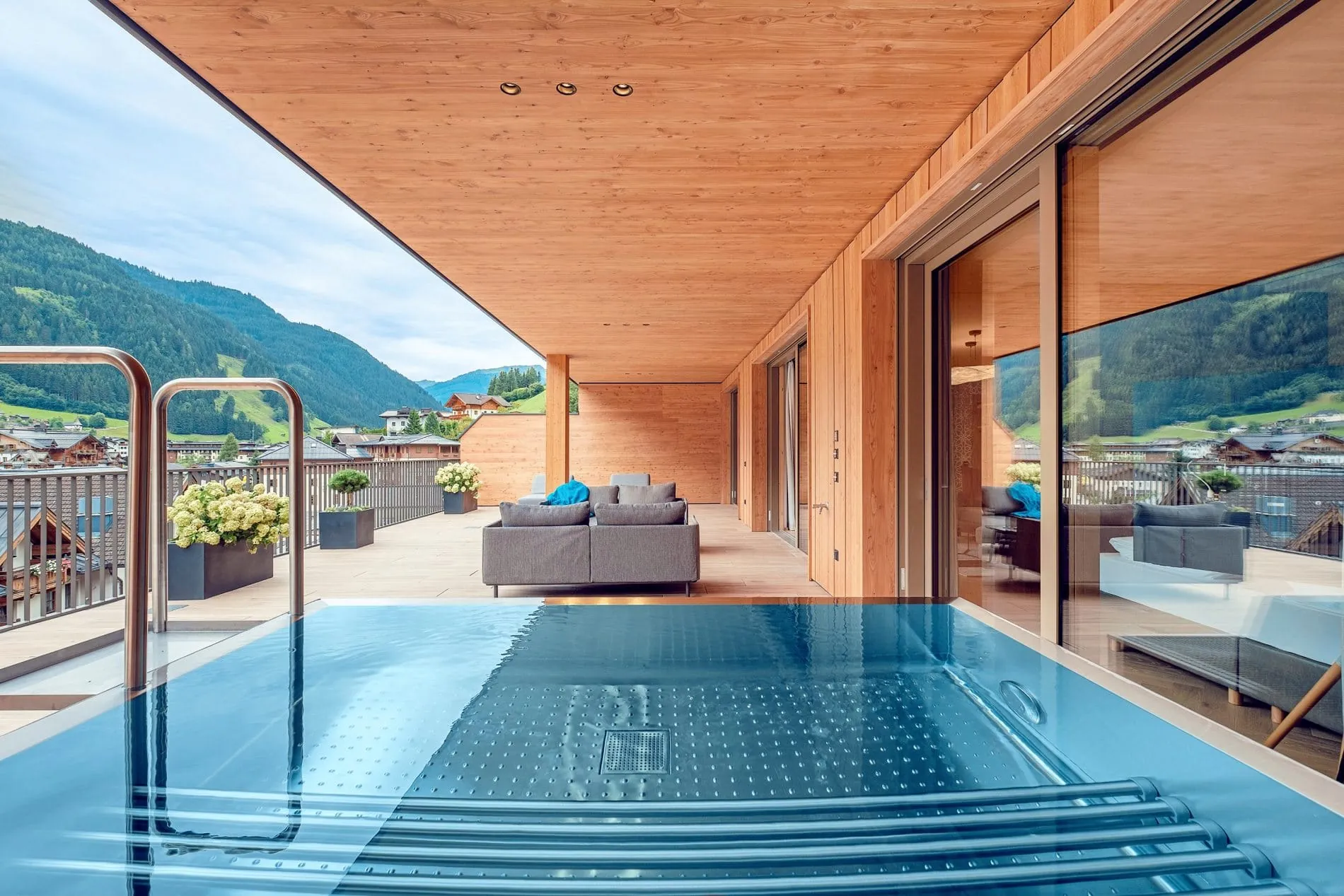 Ein Highlight sind drei Einheiten der Kategorie Top-Suite Deluxe, die über eine 50 Quadratmeter große Terrasse mit privatem Whirlpool und Liegen, einem Kamin mit Effektfeuer und einer Couchlandschaft im Wohnraum, zwei getrennten Schlaf- und Badezimmern, eigener Sauna, sowie einem Essbereich verfügen.