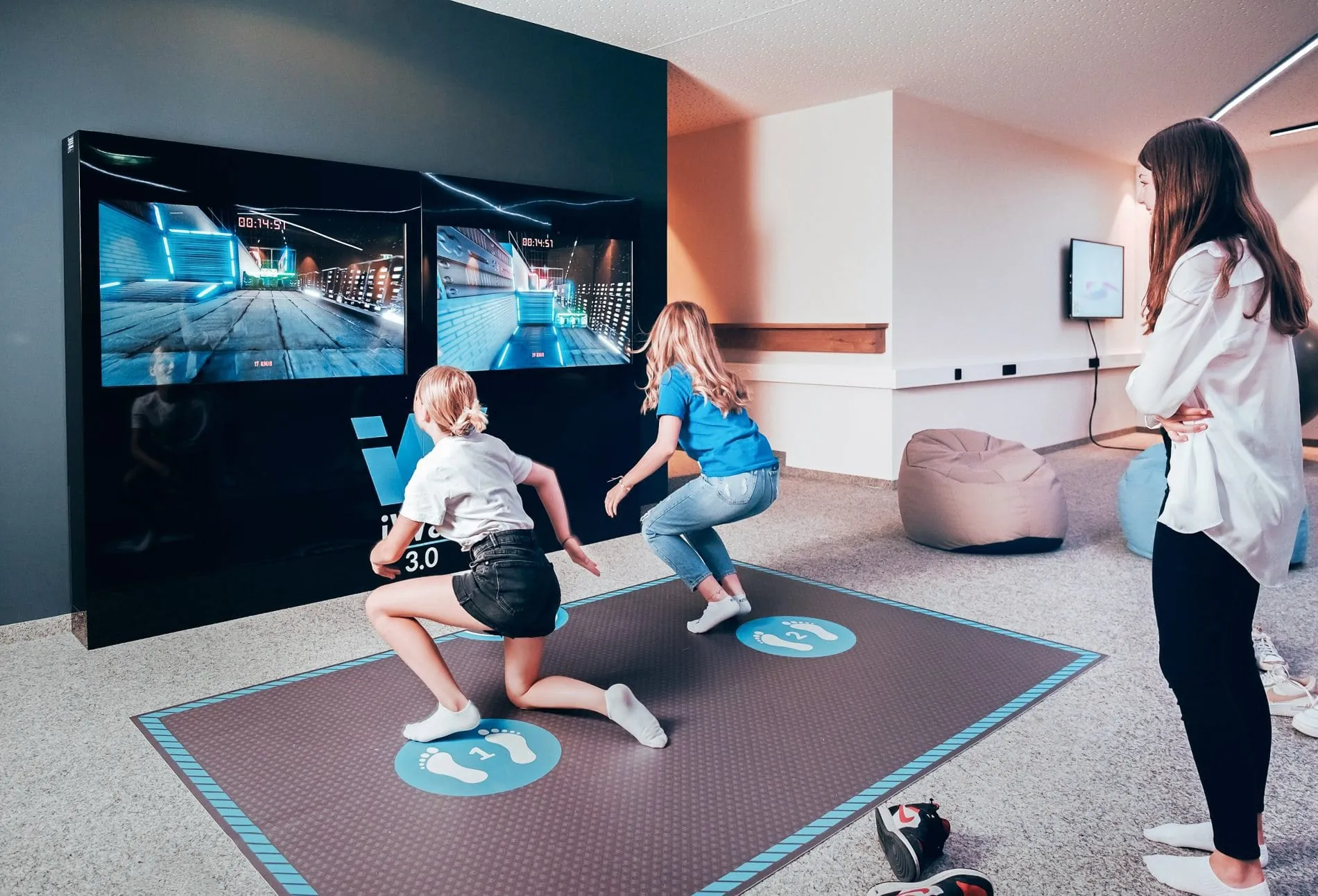 Im modernisierten Family Spa finden die Gäste ab sofort ein neues Hallenbad mit Design-Lampen und von der Decke hängenden Sitzen vor, mit hölzernen Ruheoasen sowie gemusterten Wänden. Der Kinder- und Jugendbereich wurde auf 1.000 Quadratmeter vergrößert und bietet Angebote für zahlreiche Indoor-Aktivitäten. Vom ValoJump-Trampolin in der Young Mountain Area, auf dem Kinder ihre digitalen Avatare interaktiv durchs Spiel navigieren können, über einen Indoor-Fußballplatz mit interaktiver Wand bis hin zur Loungezone für Jugendliche in der Cool Mountain Area, die wiederum mit Dart-, Billiard-, Tischtennis-, und Airhockey-Spielen, einer iWall und dem Digital-Spiel Sisy Fox aufwartet.