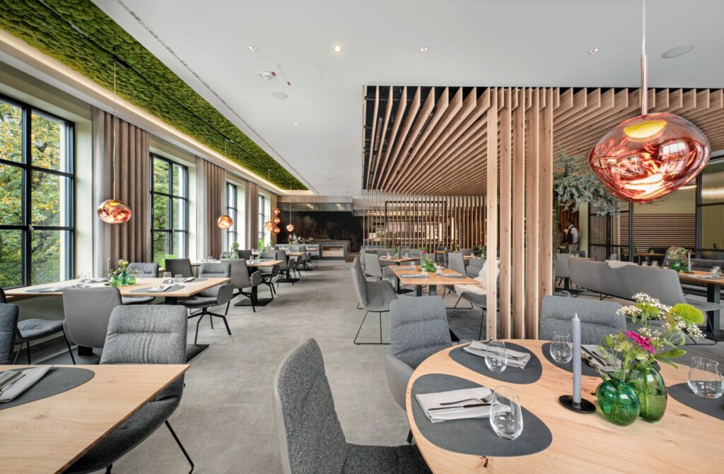 Im Zuge der Erweiterung bekam zugleich das Bestandsgebäude Haus am See ein Facelift verpasst: Alle öffentlichen Räume haben ein neues Design erhalten. Außerdem wurden alte Büroräume zu Boardrooms für kleinere Besprechungen umfunktioniert und für das neue Gastronomiekonzept des Restaurants Alter Förster mit offenem Küchenbereich entstand ebenfalls ein Anbau. Im Untergeschoss des Restaurants befindet sich nun eine Produktionsküche, in der zentral alle Vorbereitungen für die Hotelgastronomie getroffen werden können.