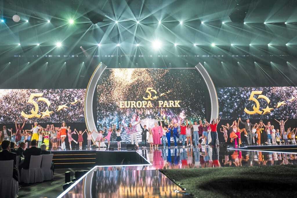Im Mittelpunkt des Abends stand eine Zeitreise durch fünf Jahrzehnte Europa-Park Geschichte, moderiert von Steven Gätjen und Christa Rigozzi. Über die Leinwand flimmerten Erinnerungen von den Anfängen 1975 bis hin zur internationalen Erfolgsgeschichte des heutigen Erlebnis-Resorts. Auf der Bühne präsentierten zahlreiche Künstler und Musiker des Europa-Park ein Showprogramm. Ein Zwei-Sterne-Menü umrahmte die Show.