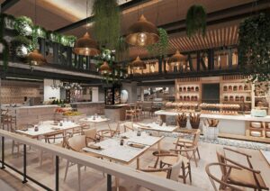 In acht Restaurants werden lokal inspirierte Gerichte und internationale Spezialitäten serviert. Das "Barranco" lädt Gäste und Einheimische zu einer Fusion aus japanischer und peruanischer Spitzenküche ein. In der "Park Food Hall" stehen traditionelle europäische Food Market-Spezialitäten auf der Karte. "The Market" bietet rund um die Uhr frische Mahlzeiten sowie Getränke To-go. Außerdem gibt es ein Starbucks Cafe.
