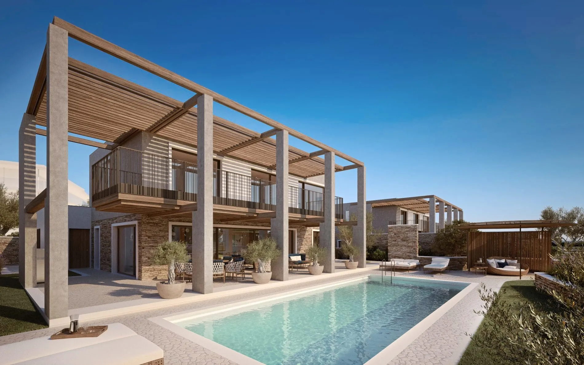 Die Villen bieten jeweils Platz für bis zu sieben Personen. Sie umfassen einen Wohnbereich, eine Küche, Schlafzimmer mit eigenem Bad und einen 40 Quadratmeter große Pool. Den Gästen steht zudem Hotelservice und ein privater Villa-Host zur Verfügung. Dieser kümmert sich unter anderem um individuelle Ausflüge, Transfers, Dinner mit eigenem Chefkoch oder Spa-Behandlungen direkt in den Villen.