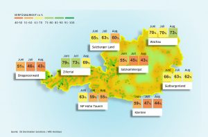 Im August sind es sogar laut DS nur noch 35 Prozent. Ähnlich verhalte sich die Situation im Tannheimer Tal mit 34 Prozent im Juli, sowie 30 und 39 Prozent im August und September. Kärnten, Ötztal, Bregenzerwald und Salzkammergut laufen auch ganz allmählig zu.