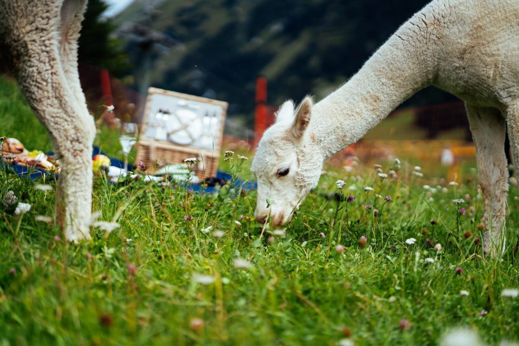 Sport mit Knuddelfaktor: Das österreichische Aurelio Lech lädt seine Gäste ab sofort zum Yoga mit den hauseigenen Alpakas. Wer es lieber entspannt angehen lässt, kann ein Alpaka-Picknick buchen.