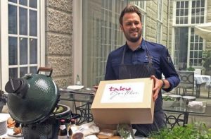 Mirko Gaul: In der Grillbox verbinden sich zwei meiner großen Leidenschaften perfekt miteinander – die für die asiatische Küche und die fürs Grillen. Beispielsweise bieten wir in unserer Box Wildkräutersalat an Yuzu-Sesam-Vinaigrette. Ich möchte unseren Käufern Top-Qualität bieten, so wie es unsere Gäste auch aus dem 'Taku' kennen und erwarten dürfen. Von der Sauce für Saté-Spieße über den Hoisin-Lack der Spareribs bis hin zu Grillsaucen sind alle Rezepte in unserer 'Taku'-Küche entstanden.