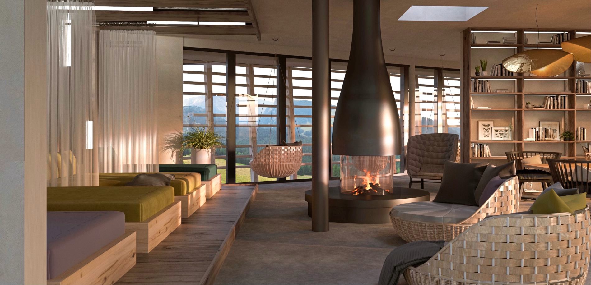 Mehrere Ruheoasen und eine Bibliothek mit Kamin gehören ebenfalls zum neuen Spa. © Gut Steinbach
