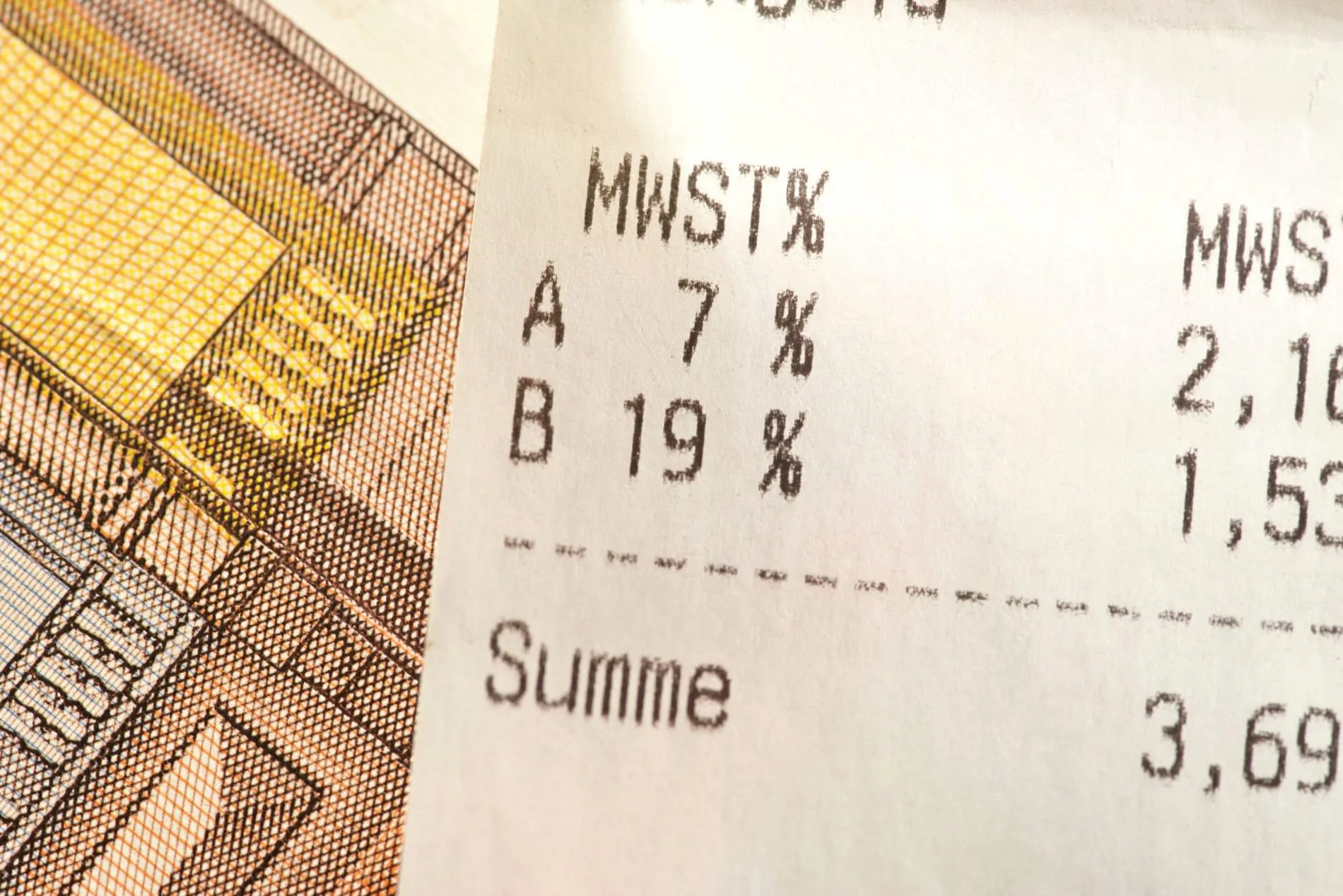 Ein Kassenbon mit der Mehrwertsteuer Angabe