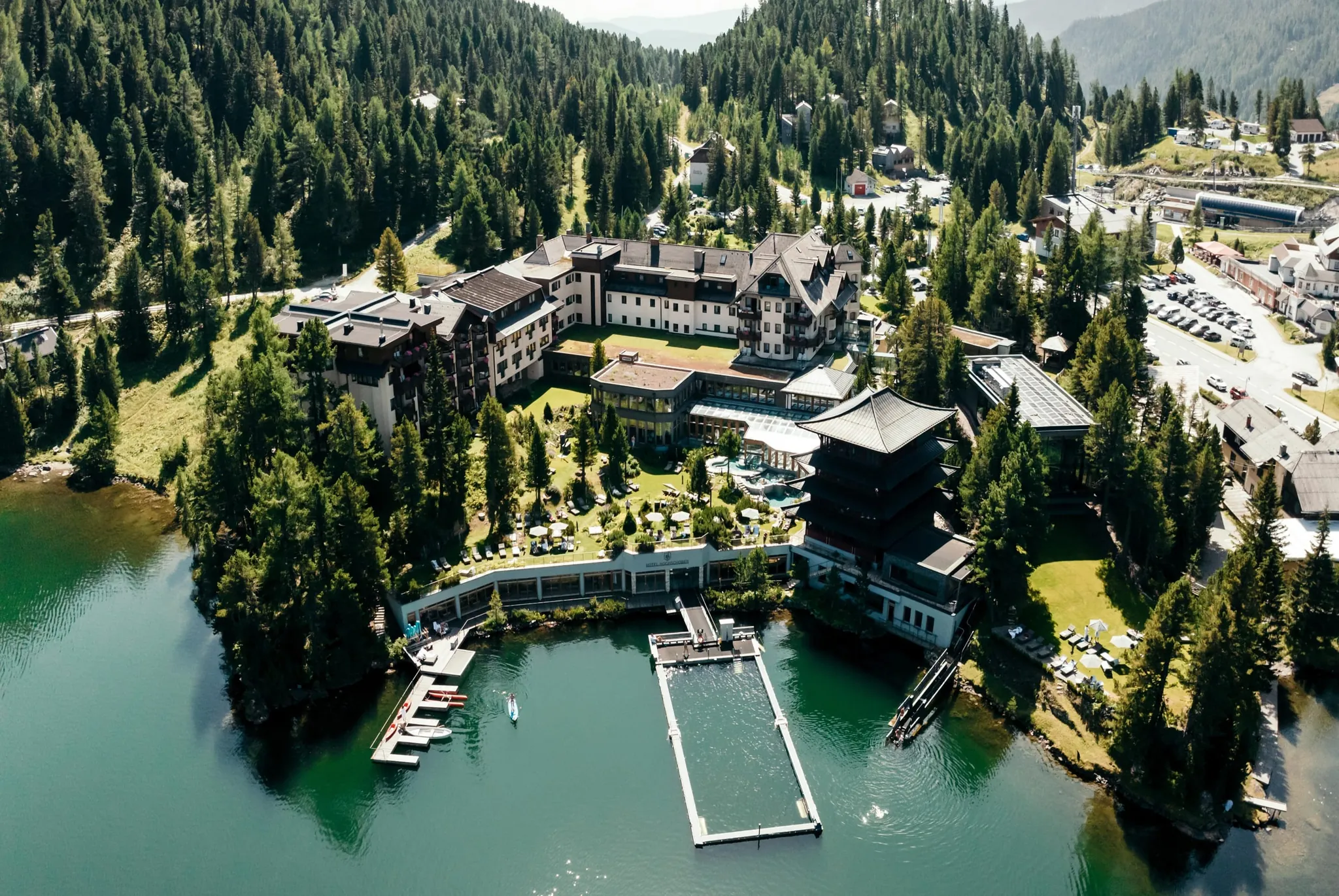 Den Abschluss des Drei-Etappen-Plans bilden laut dem Hotel drei moderne, zweistöckige See-Chalets aus Holz, die planmäßig ab 2028 hinter dem See-Sauna-Zubau entstehen sollen. Jedes Chalet soll vier Apartments mit jeweils 55 Quadratmetern Fläche umfassen, die sich bei Bedarf zu einer 110 Quadratmeter großen Wohneinheit zusammenlegen lassen. Die Chalets werden zwar an das Hotel angebunden, verfügen jedoch über eine separate Zufahrt und eine eigene Parkgarage – konzipiert für Gäste, die Wert auf Privatsphäre und ein eigenständiges Wohnambiente legen. red/sar