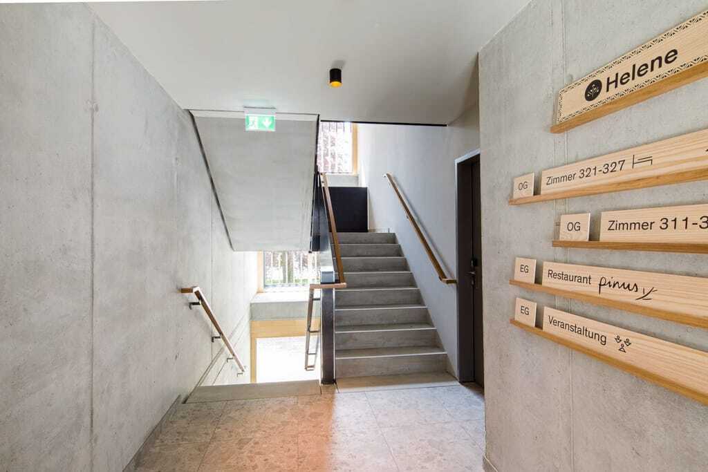 Ein dunkles oder schlecht gestaltetes Treppenhaus ist ein echter Planungsfehler. Auch diese Bereiche dürfen keinesfalls trist oder langweilig wirken – schließlich sollen sich die Gäste im ganzen Hotel wohlfühlen. Eine gute Orientierung ist wichtig; noch besser ist es, wenn die Planung so durchdacht ist, dass ein zusätzliches Wegeleitsystem überflüssig wird. Große Glasflächen im Treppenhaus mögen zwar viel Licht bringen, jedoch erhöhen sie den Pflegeaufwand erheblich und können den Raum aufheizen. Und: Hell gestaltete Flure wirken anfangs zwar frisch und sauber, sind aber wenig praktisch, wenn der Transport von Koffern an den Wänden Spuren hinterlässt. Die Lösung sind abwaschbare Oberflächen. Auch Ecken und Kanten  der Wände sollten geschützt werden, um Schäden zu vermeiden und Kosten für Reparaturen zu minimieren.