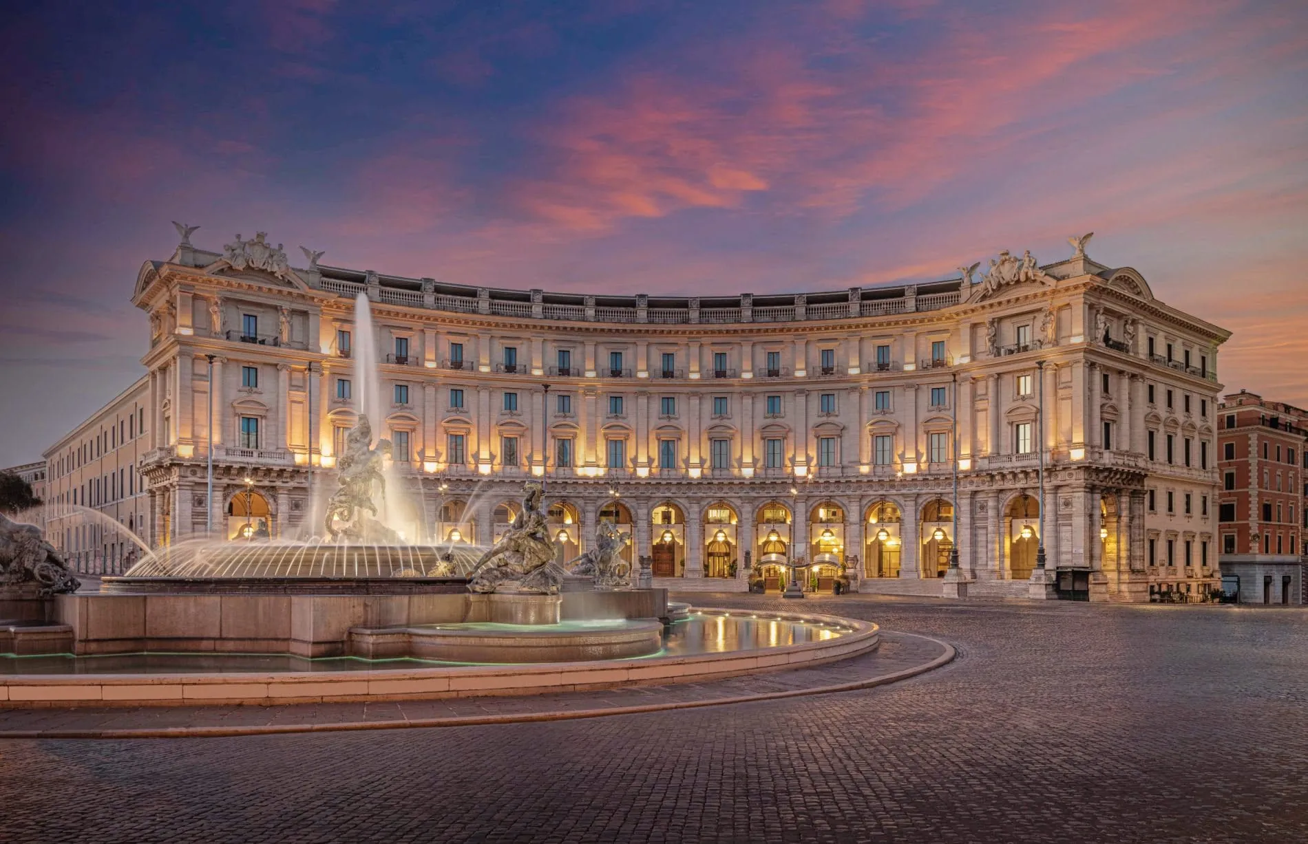 Das Gebäude aus dem 19. Jahrhundert steht auf dem Boden der antiken Diokletian Therme und setzt zugleich mit seiner halbkreisförmigen Bauweise die Piazza della Repubblica in Szene. Der Eingang in das Luxushotel in ein Säulengang gegenüber dem namensgebenden Najaden Brunnen. Der Mittelpunkt des Anantara Palazzo Naiadi Rome Hotel ist die hoch aufragende Lobby, deren Säulen und Stuck von einem Kronleuchter aus Muranoglas gekrönt werden.