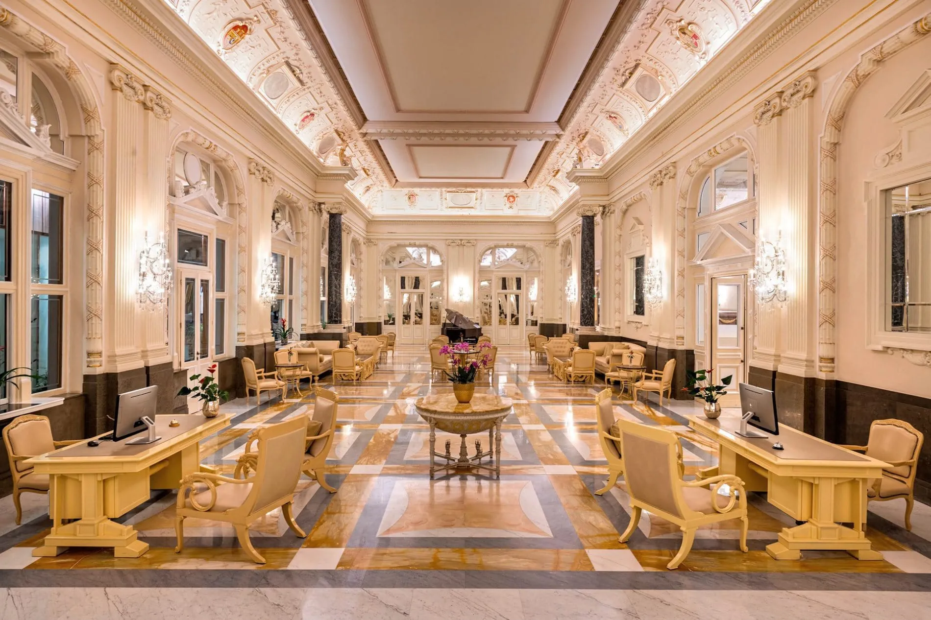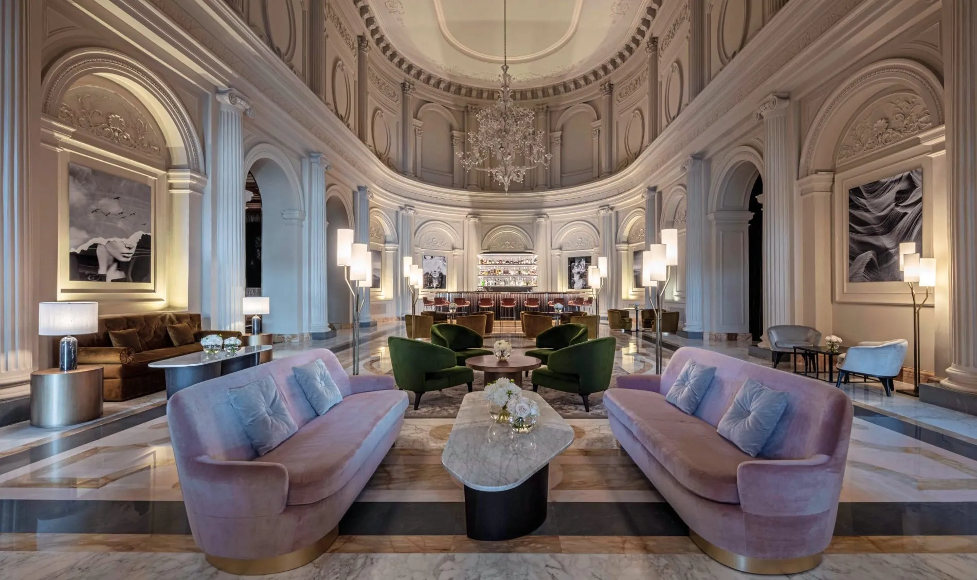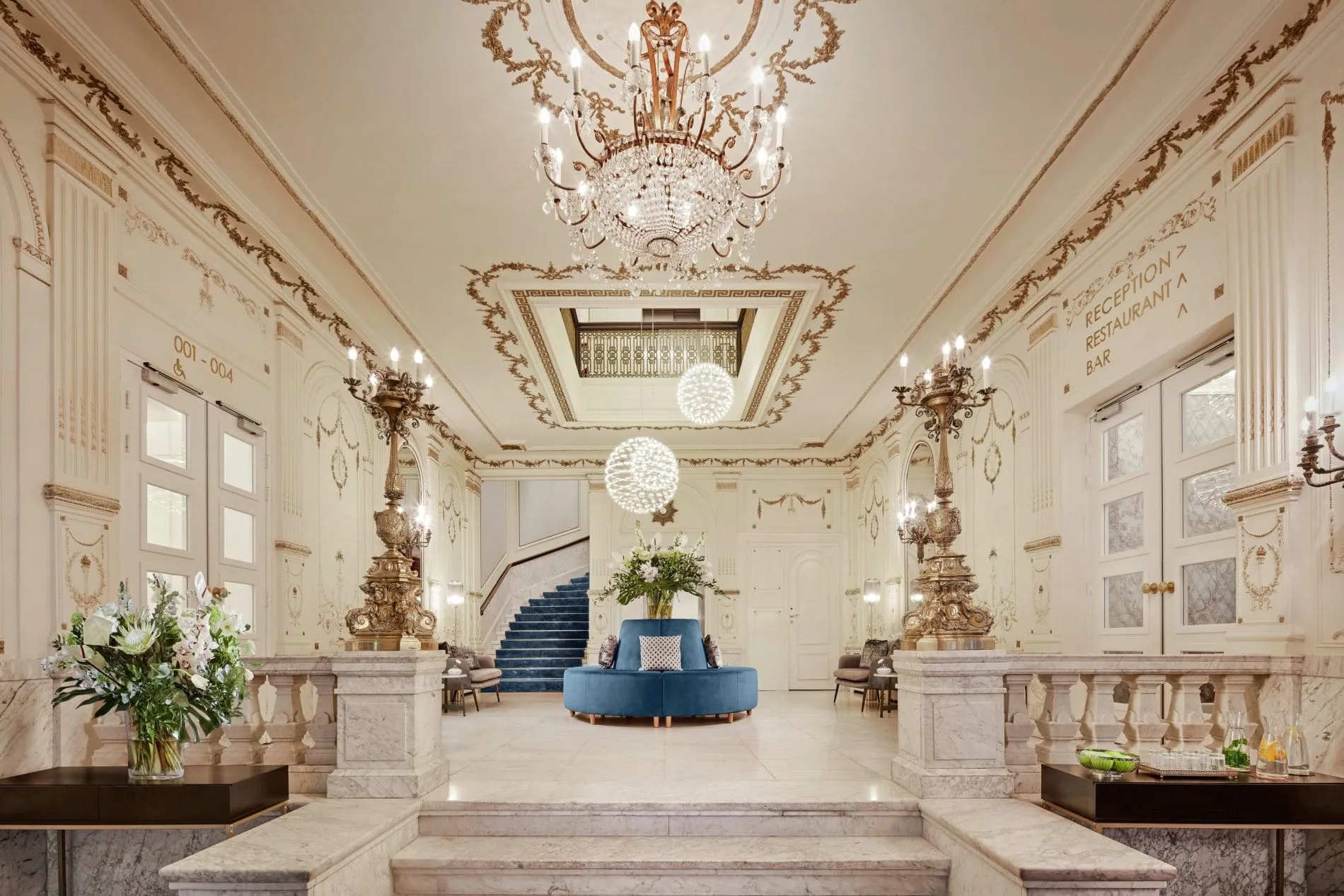 Herzstück des Fünfsternehotels mit 152 Zimmern und Suiten ist die Lobby. Die einstige Schalterhalle wurde umfassend renoviert: Original Stuck und Deckenfresken sowie vier schwarze Alabaster Säulen sollen ans 19. Jahrhundert erinnern. In der Lobby befindet sich auch das Lobby Café, dessen Küche ganztägig geöffnet ist. sar