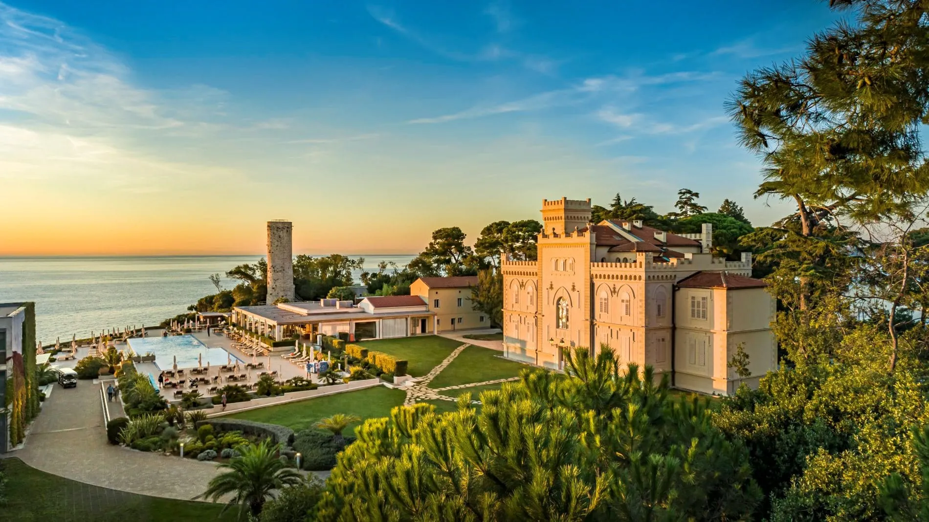 Das Hotel ist ein Ensemble aus Schloss und modernem Neubau. Heute beherbergt das renoviertes Sommerschloss der Adelsfamilie Polesini aus dem Jahr 1888 Zimmer und Suiten samt Adria-Blick.