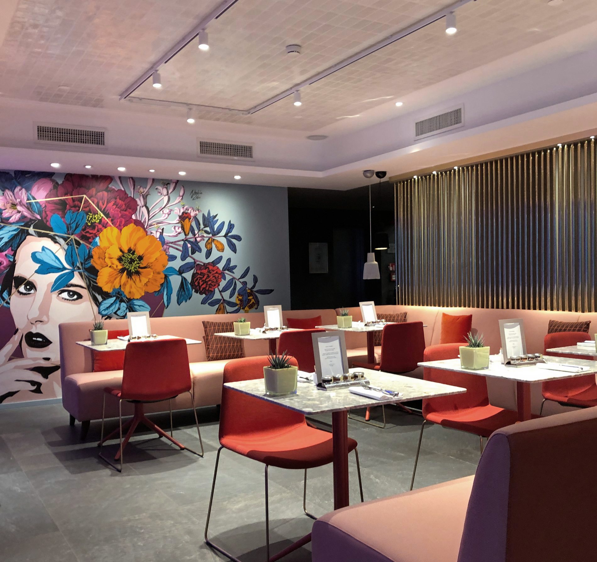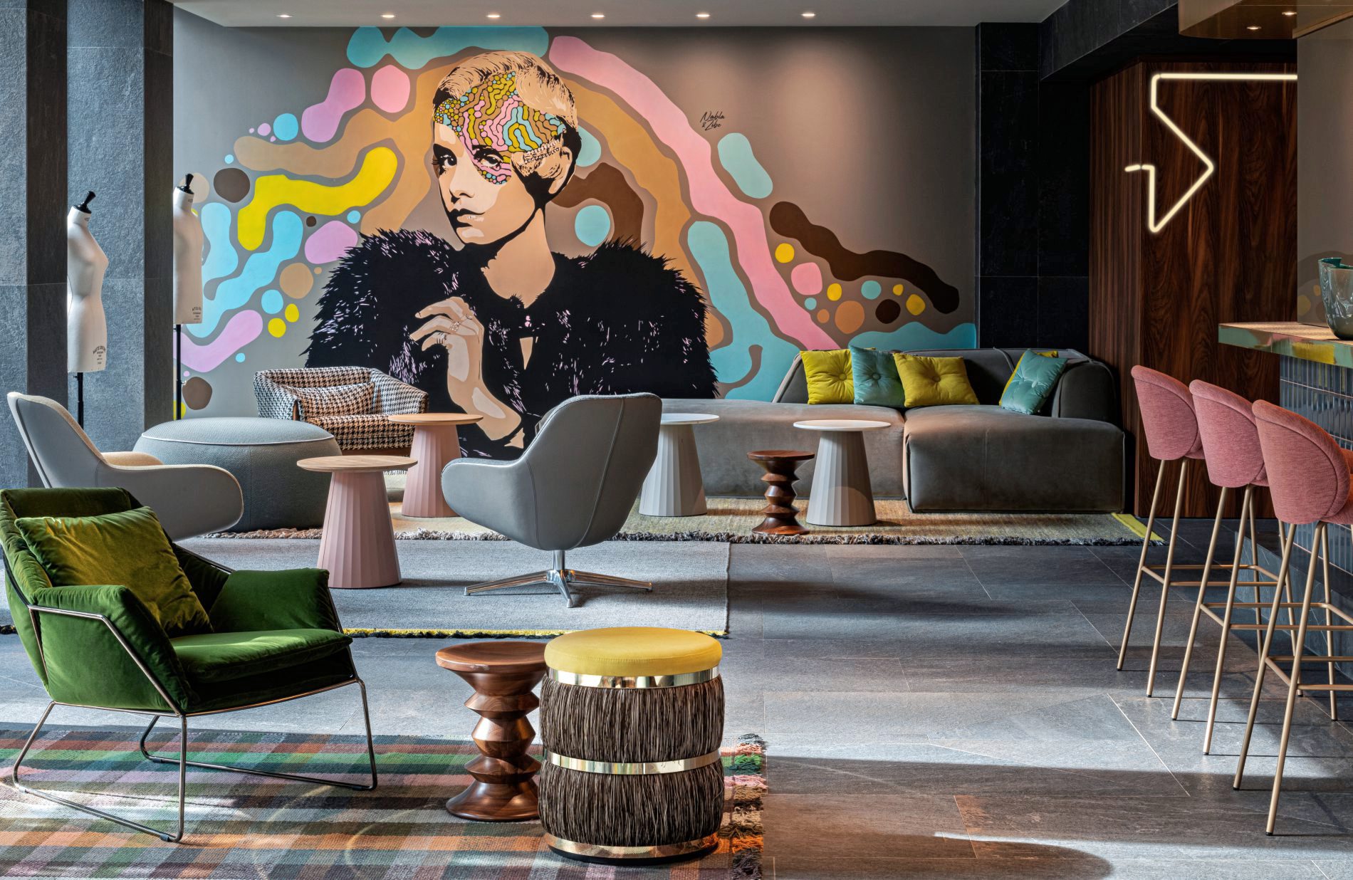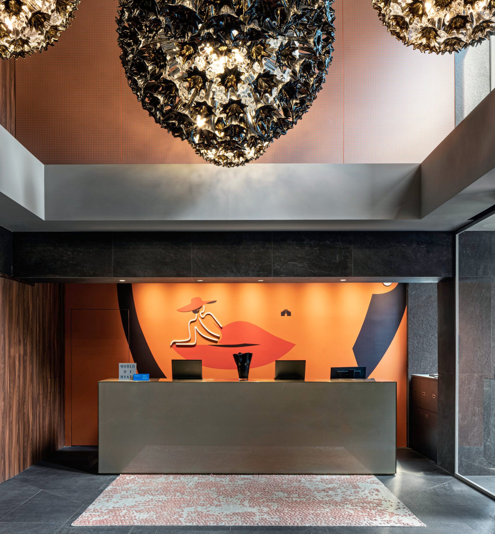 Für die beiden Hyatt Centric Hotels suchte Geplan Design verschiedene Kunstschaffende aus den Feldern Street Art, Grafikdesign und Illustration, deren Werke nun wandfüllend oder dezent gerahmt die Blicke der Gäste auf sich ziehen sollen. "Das sind Eyecatcher in den von uns gestalteten Bereichen, Innenarchitektur und Kunst spielen zusammen, sind perfekt aufeinander angepasst", erklärt Sabine Ludwig, Creative Directorin bei Geplan Design und federführend am Projekt beteiligt. Im Hyatt Centric Milano in der Modehauptstadt Mailand spielt auch die Mode eine Rolle und wurde gestalterisch in Bezug gesetzt, auf Murano war es das Thema Glas und Wasser.
