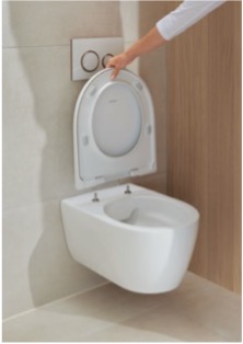 Bei der WC-Keramik sollten spülrandlose Rimfree-Modelle zum Standard gehören, da sie kaum verdeckte Bereiche besitzen und so Keimen und Ablagerungen wenig Angriffsfläche bieten. Die verdeckte Befestigung führt zusätzlich dazu, dass die Modelle weniger Ecken und Kanten haben. Zusammen mit der optional erhältlichen Spezialglasur KeraTect wird so die Reinigung deutlich erleichtert.