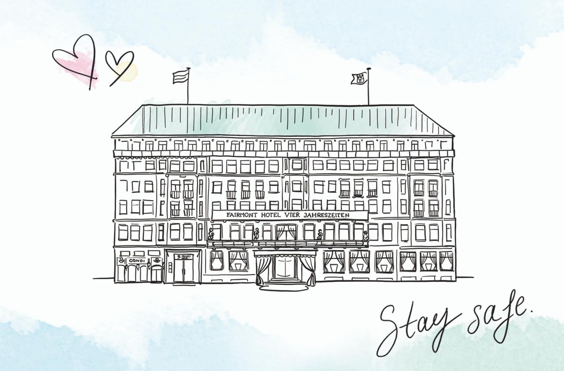 Ein maßgeblicher Schlüssel dazu ist unsere „Stay-safe-at-Hotel-Vier-Jahreszeiten“-Kampagne, die wir unmittelbar nach dem Lockdown mit unserem Marketing-Team entwickelt haben. Die Kampagne setzt nicht nur auf umfassende Sicherheitsmaßnahmen im Sinne von Hygiene, sondern auch im Sinne von Flexibilität, um bestmöglich auf die aktuellen Gästebedürfnisse einzugehen. Begonnen hat alles mit einer „Stay Safe“ Postkarte, die wir handgeschrieben an unsere Stammgäste versendet und uns damit sehr persönlich und fürsorglich in Erinnerung gebracht haben. Unsere Hotelgäste finden diese Postkarten nun beispielsweise auch auf den Zimmern und Suiten, um sie an Freunde zu senden – das Porto übernehmen selbstverständlich wir.