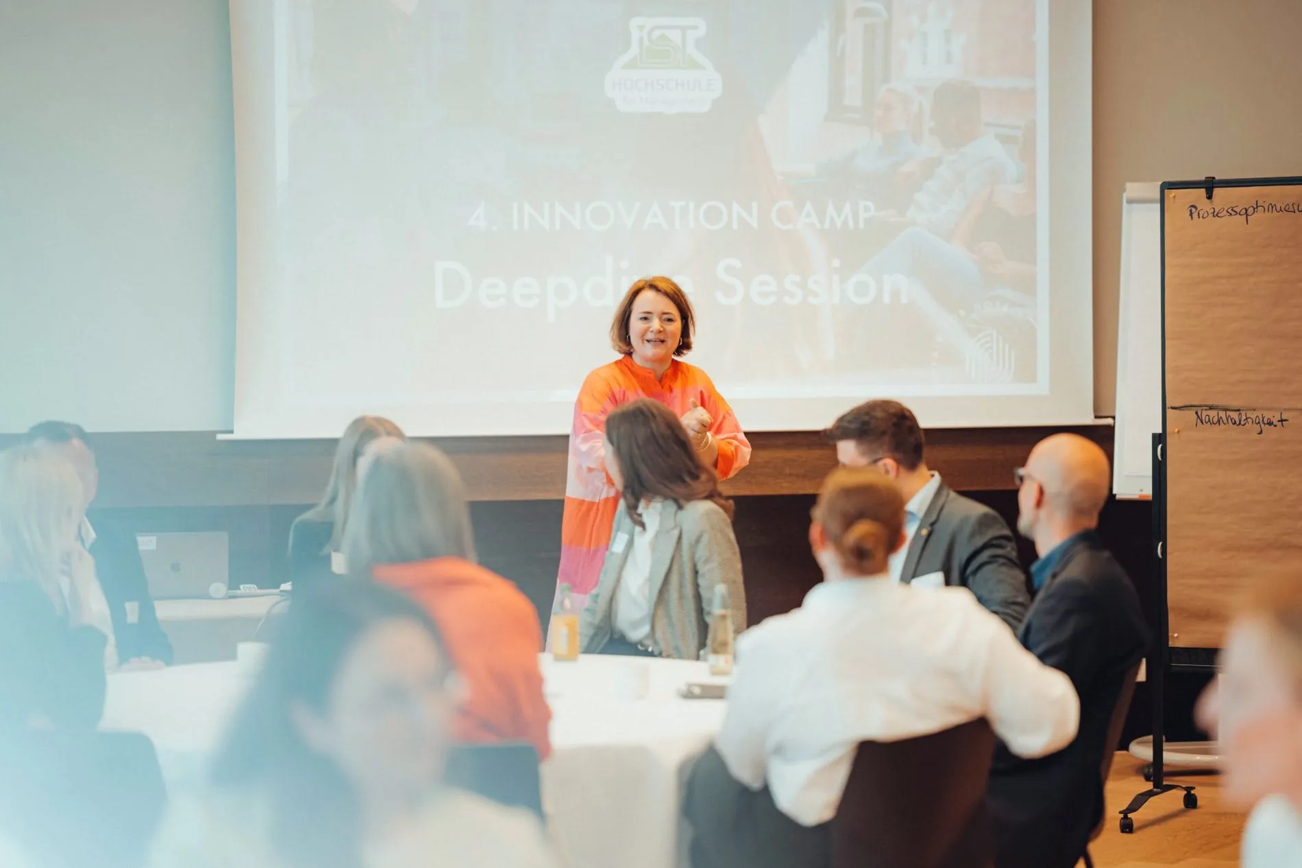 Um einen konkreten Nutzen aus dem Innovation Camp zu ziehen, fand vormittags und nachmittags ein Deep Dive Workshop statt, in dem die Teilnehmer Umsetzungsideen entwickelten. Thomas Corinth, Lehrverantwortlicher an der IST-Hochschule in Düsseldorf und langjähriger Partner der Fair Job Hotels, gestaltete diese.