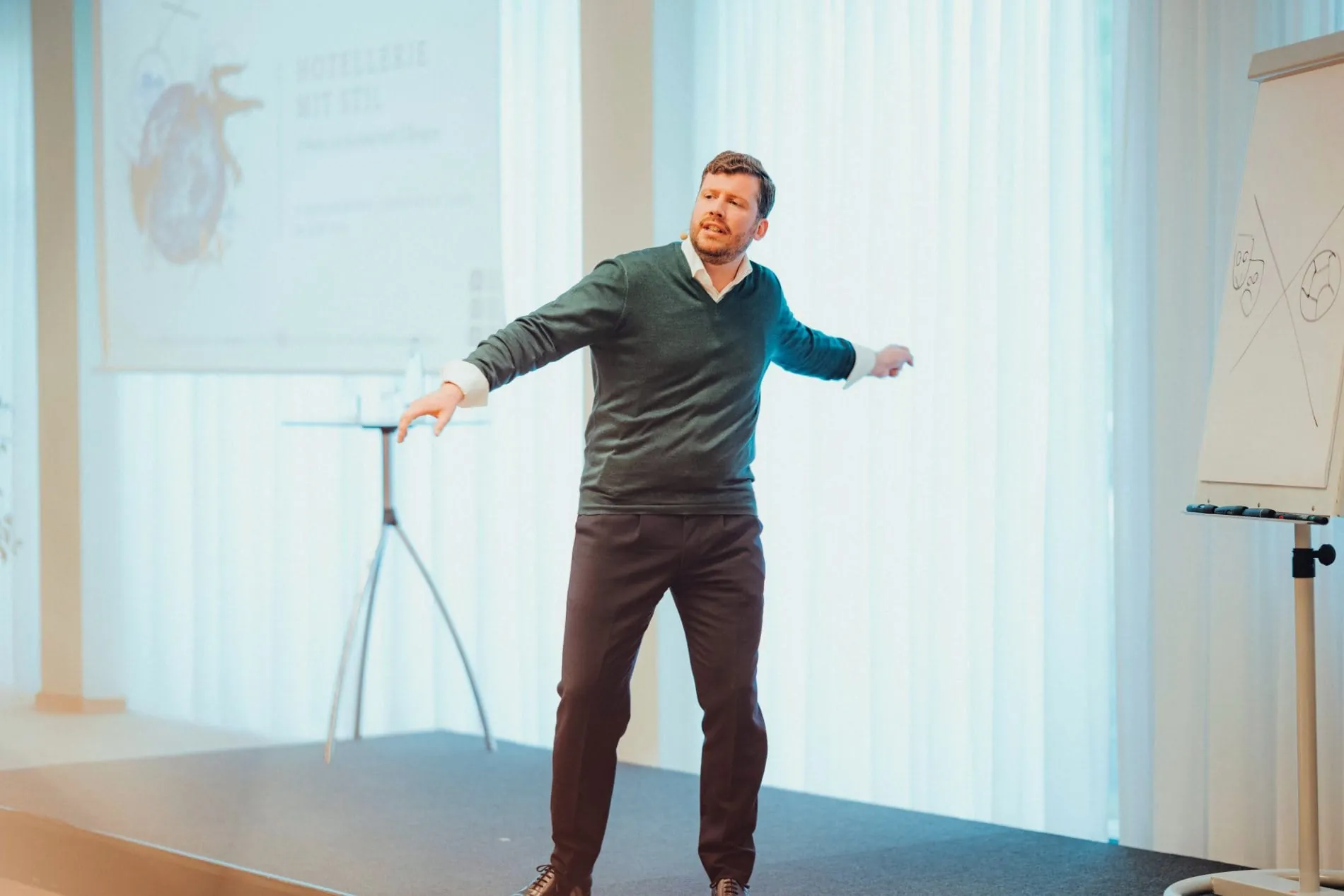 Das Programm des Innovation Camps war mit Experten-Vorträgen und praxisnahen Workshops rund um die Themen Prozessoptimierung & Digitalisierung, Nachhaltigkeit und People & Culture gefüllt. Marlon Meiser, der mit den Meiser Hotels zu den Fair Job Hotels gehört, eröffnete mit seiner Keynote "Dare to think big: Der Weg der Meiser Hotels hin zur Prozessoptimierung" und veranschaulichte, wie man die Kosten eines Prozesses errechnet, um eine Entscheidung über eine digitale, automatisierte oder analoge Optimierung zu treffen.