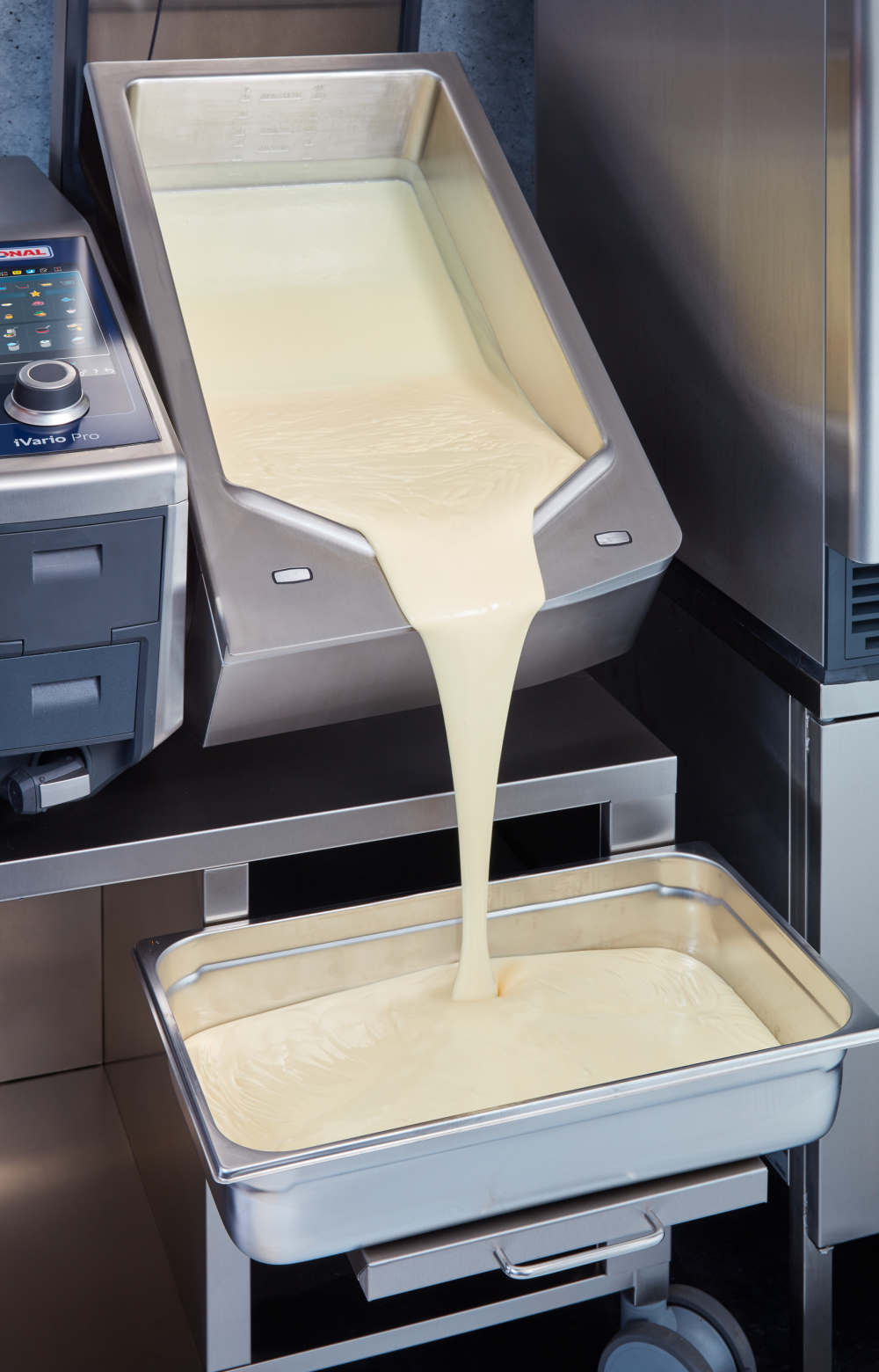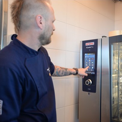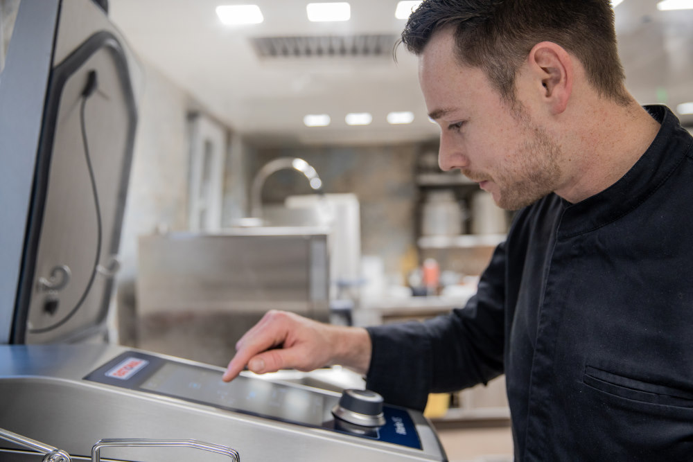 Das Gerät reduziert den Stress in den Show-Küche deutlich. „Es nimmt uns viel Arbeit ab“, unterstreicht Rohländer-Franke. Das trägt auch zur Mitarbeiterzufriedenheit bei. Zudem ist der iVario Pro mit der dazugehörigen App ConnectedCooking über Handy oder Tablet von jedem beliebigen Ort aus – auch vom Homeoffice – zu steuern. Die Bedienung des Geräts vor Ort läuft über ein digitales Bedienfeld.