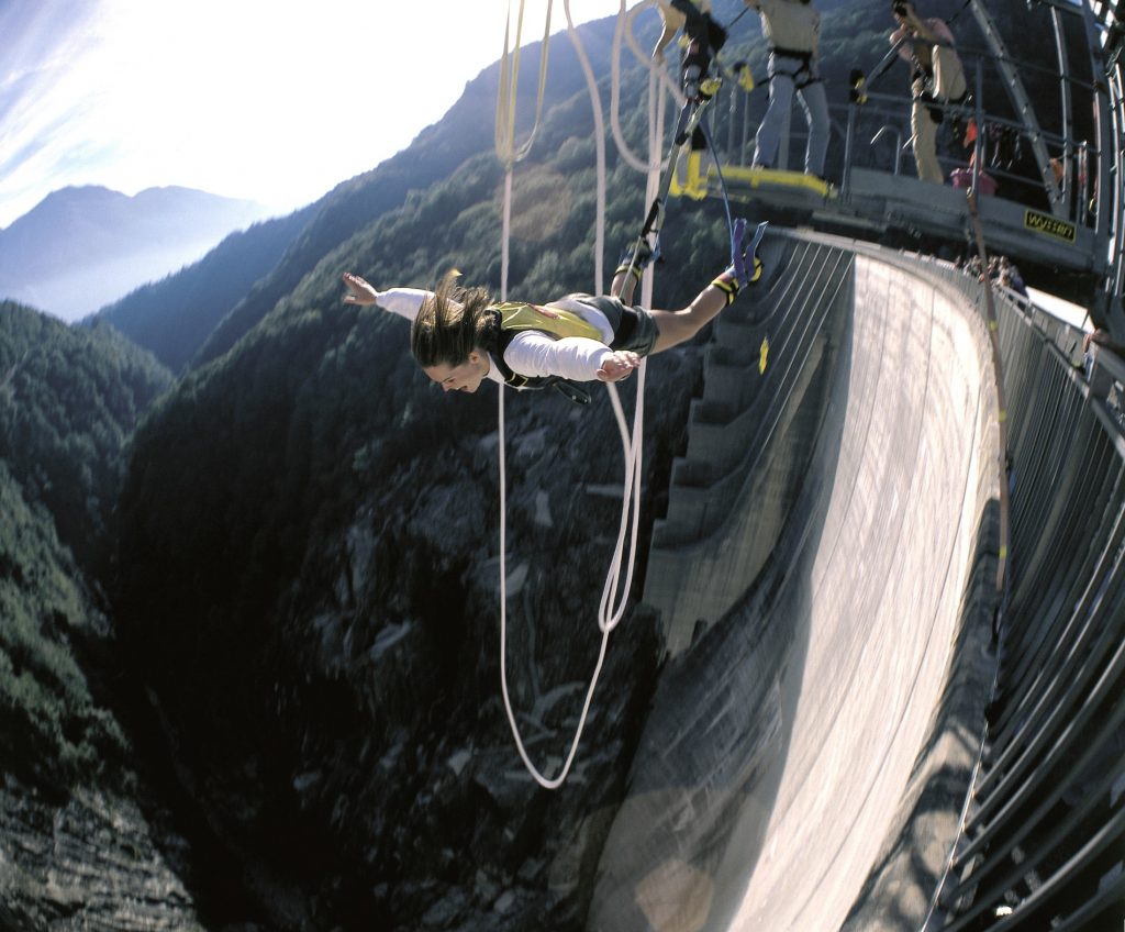 Am Lago di Vogorno (Schweiz) können Kinofans James Bond nacheifern. In "GoldenEye" (1995) springt er mittels Bungee-Sprung von der Tessiner Verzasca-Staumauer. In einer der berühmtesten Stunt-Szenen der Filmgeschichte stürzt Pierce Brosnan an einem Seil 200 Meter in die Tiefe, bevor er ein verstecktes Giftlabor entert. Auch in der Realität können sich Schwindelfreie während der 7,5 Sekunden freier Fall von der Actiontauglichkeit dieser Sequenz selbst überzeugen.