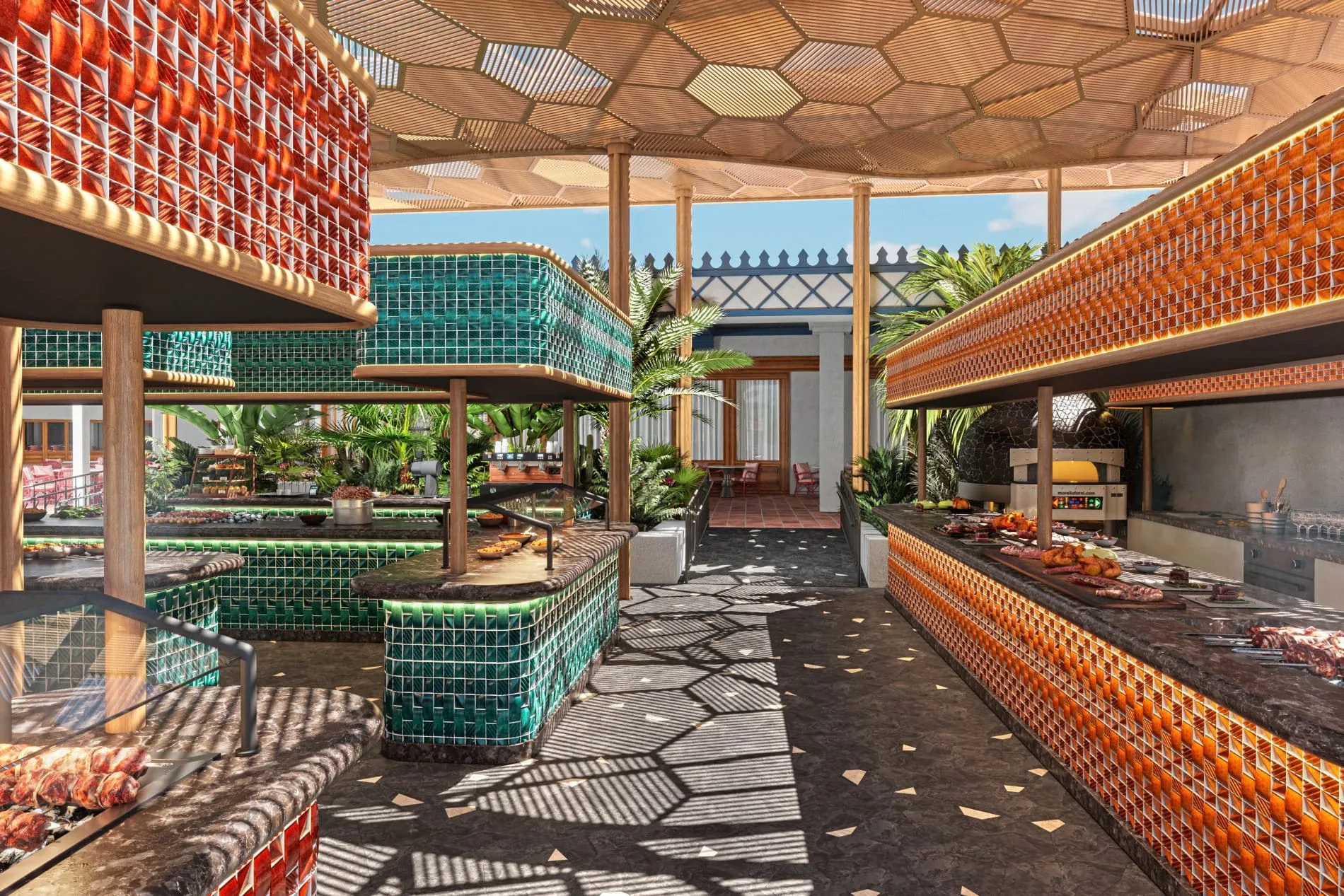 Auch das kulinarische Angebot wurde neu gedacht. Im Restaurant „Arroz y Fuego“ wird Paella am offenen Feuer zubereitet, Tapas ergänzen das Menü. Vier neue Open-Air-Live-Cooking-Stationen, gestaltet mit Mosaiken, bringen Abwechslung: von Fisch wie Tuna, Lachs oder Dorade über Steaks und Geflügel vom Grill bis hin zu Burgern, hausgemachten Dönern, vegetarischen Currys, gegrilltem Gemüse und selbstgemachter Pasta. Ergänzt wird das Konzept durch das neue „Milk Lab“, ein Café mit Frozen Custard, Smoothies, Proteinshakes und Gebäck. „Wir möchten unseren Gästen das Beste aus aller Welt präsentieren und haben zusätzlich 17 Köche verschiedener Nationalitäten eingestellt. Mit dem kulinarischen Angebot, der Welt für Kinder und den neuen Suiten positionieren wir Los Jameos als all inclusive High-End-Familienresort“, sagt Gregor Gerlach, der die Seaside Collection mit seiner Schwester Anouchka Gerlach auf inzwischen zehn Hotels und Resorts in Deutschland, Spanien und auf den Malediven erweitert hat. red/sar