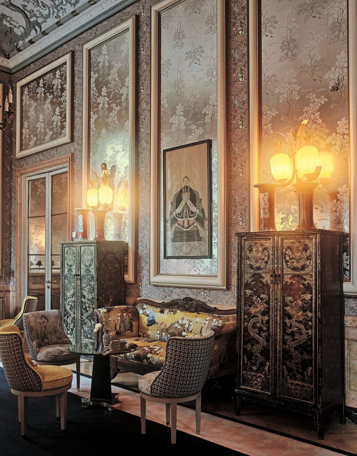 Von seiner Historie geprägt, soll die Inneneinrichtung des Hotels an ein spanisches Adelshaus aus dem 18. Jahrhundert erinnern, in dem oft verschiedene Designstile aufeinanderprallten. So ist der Übergang zwischen den Epochen fließend, diese reichen zum Beispiel von der georgianisch-englischen Bibliothek mit warmen Eichenregalen sowie leuchtend grünen und goldenen Samtstoffen bis hin zu den orientalischen Einflüssen in "The Chinese Lounge" mit Wandverkleidungen und Stoffen in verschiedenen Chinoiserie-Mustern. Daneben finden Gäste im ganzen Hotel in schwarz- und goldtönen lackierte Möbel sowie Porträts aus der Qing-Dynastie.